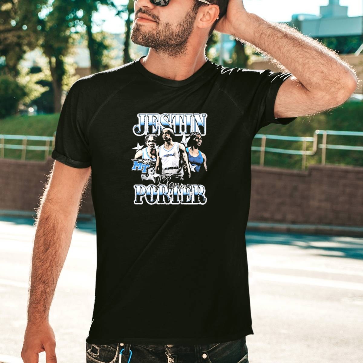Show your pride for the Middle Tennessee Blue Raiders with the Jestin Porter 90s Signature T-Shirt! This fan-made design is perfect for dedicated supporters, offering a nostalgic nod to the vibrant spirit of the 90s. Whether you’re at a game, hanging out with friends, or simply enjoying casual outings, this shirt is the ideal choice for showcasing your team loyalty in style. Crafted for comfort and durability, it’ll quickly become a staple in your wardrobe.
