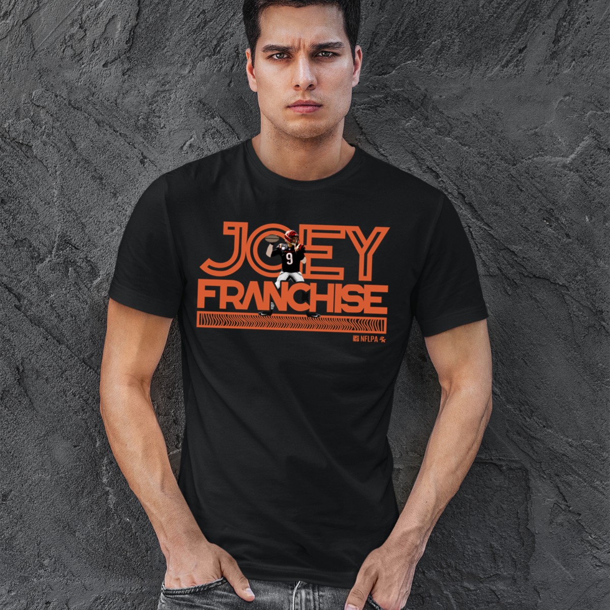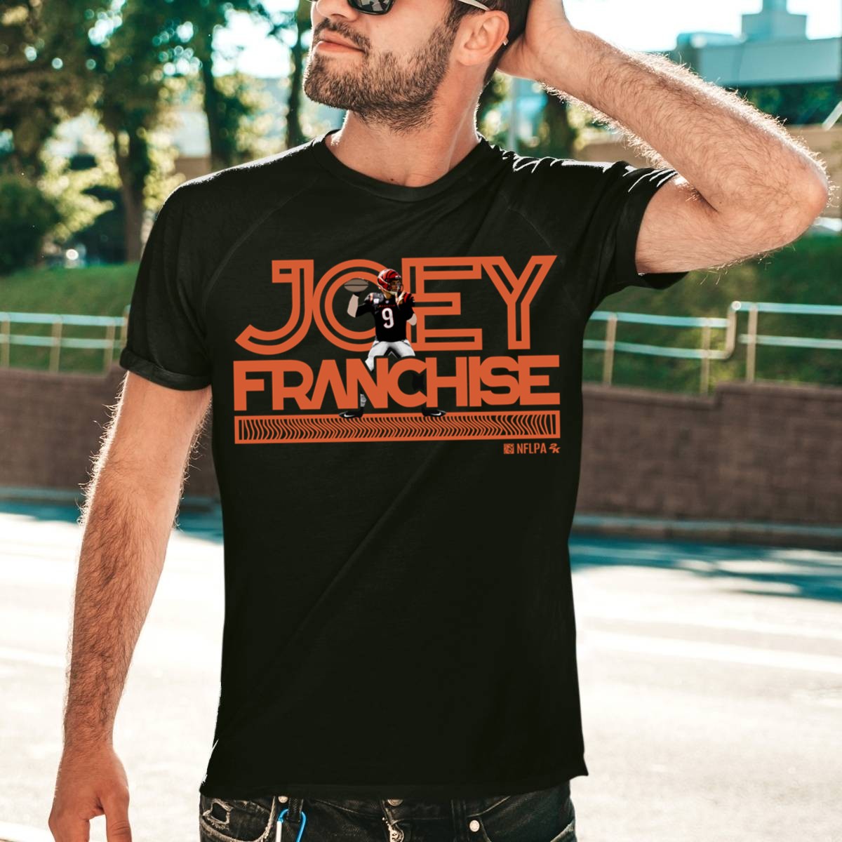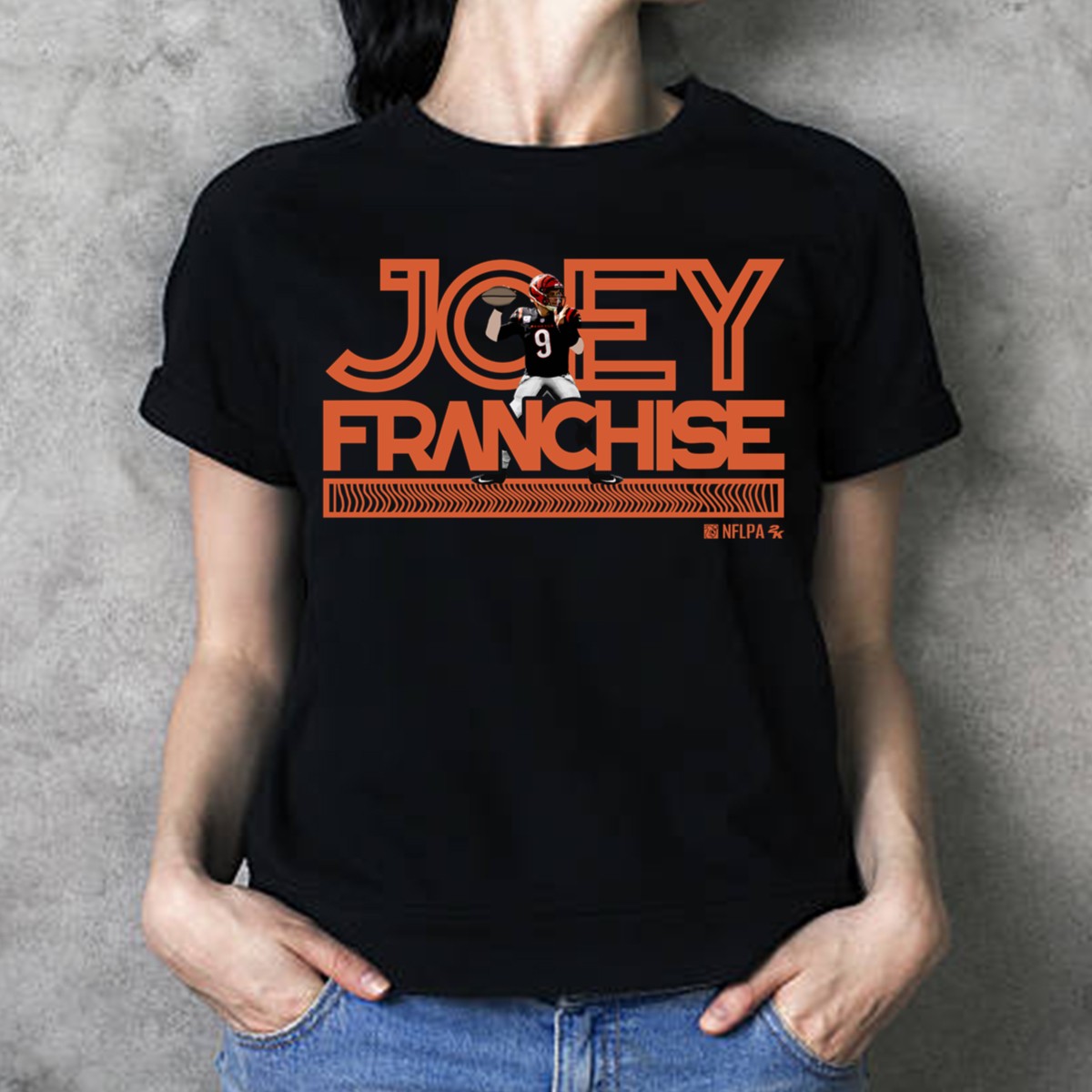 Show your support for the ultimate quarterback with our Joe Burrow Joey Franchise T-Shirt! This fan-made design is perfect for die-hard football enthusiasts, casual outings, or themed events with friends. Crafted in the USA, this shirt combines style and comfort, making it an essential addition to your wardrobe whether you’re cheering from the stands or lounging at home. Stand out and celebrate your love for the game with this unique, eye-catching tee!
