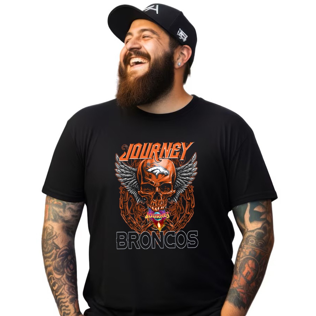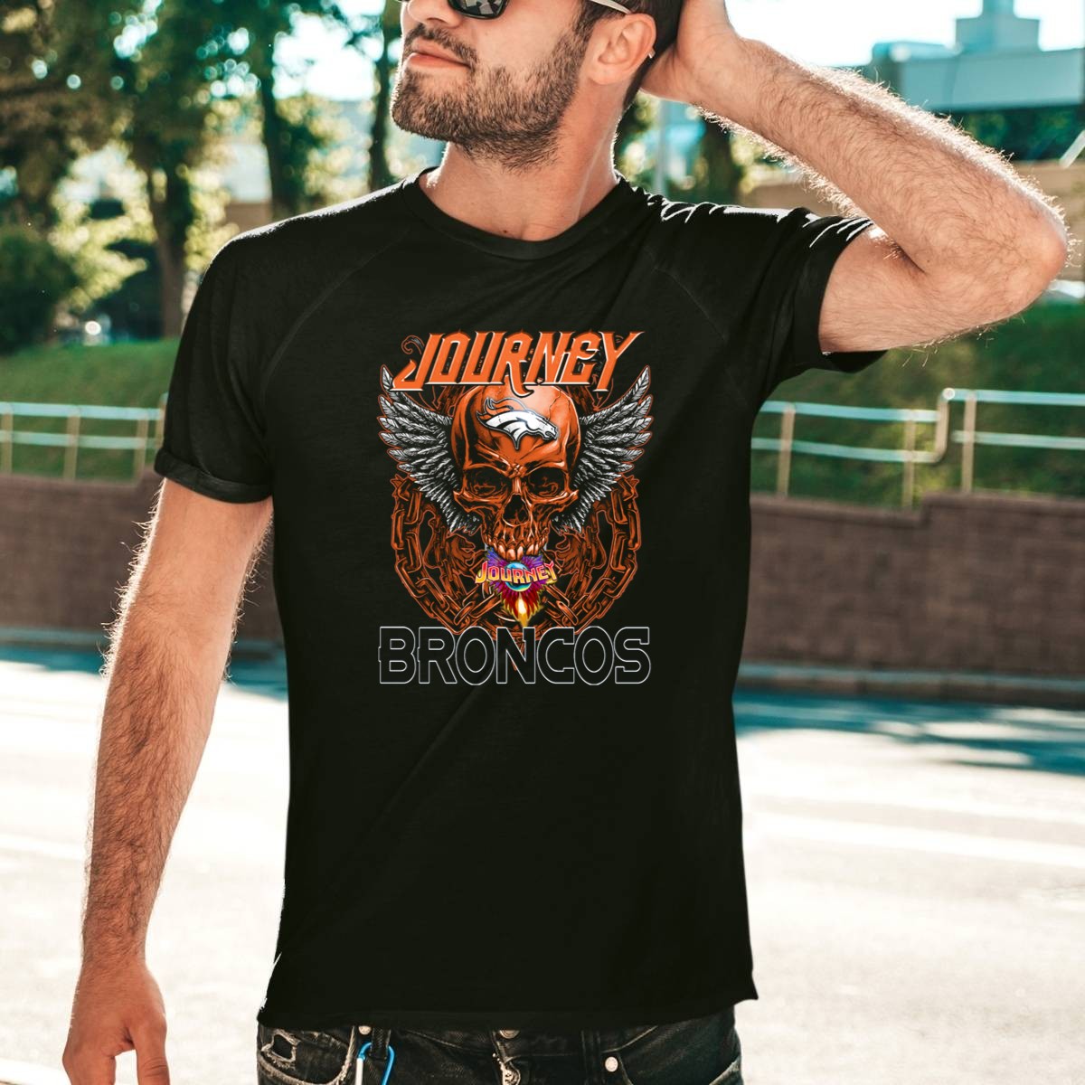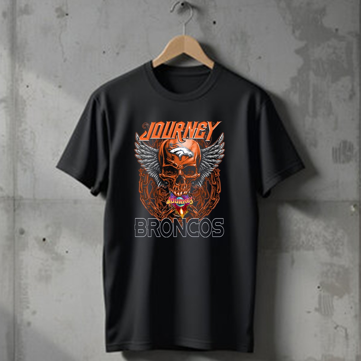 Show your passion for the Denver Broncos with our Journey Denver Broncos Skull With Wings And Chains T-Shirt, a perfect blend of style and team spirit. This eye-catching tee is designed for die-hard fans who want to make a statement while showcasing their love for the game. Ideal for casual outings, themed events, or everyday wear, this shirt features a unique fan-made design printed in the USA, ensuring you stand out in the crowd.