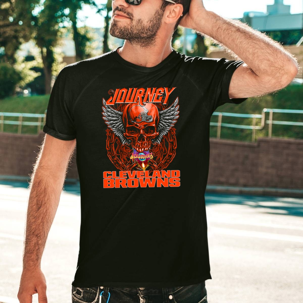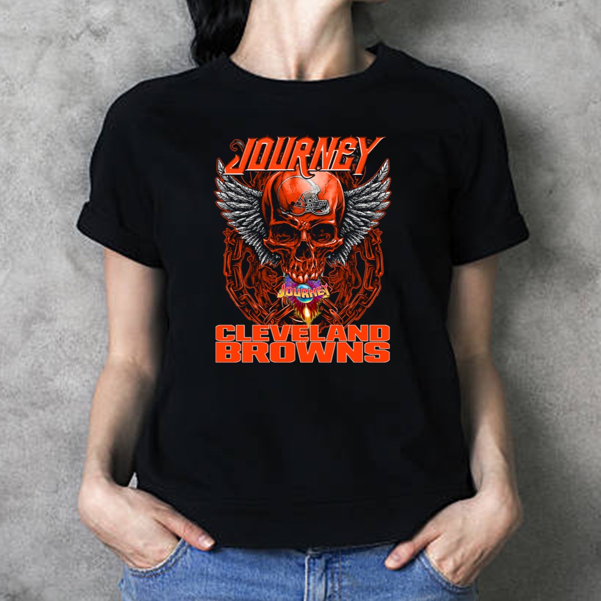 Show your team spirit with the JOURNEY Winged Flaming Skull CLEVELAND BROWNS Football Helmet T-Shirt! Perfect for die-hard fans and casual wearers alike, this shirt features a striking design that captures the heart of the game. Whether you’re cheering from the stands, hosting a themed event, or just enjoying a laid-back day, this shirt is ideal for showcasing your love for the Cleveland Browns in style. Made with comfort in mind, it’s a unique addition to any fan’s wardrobe.