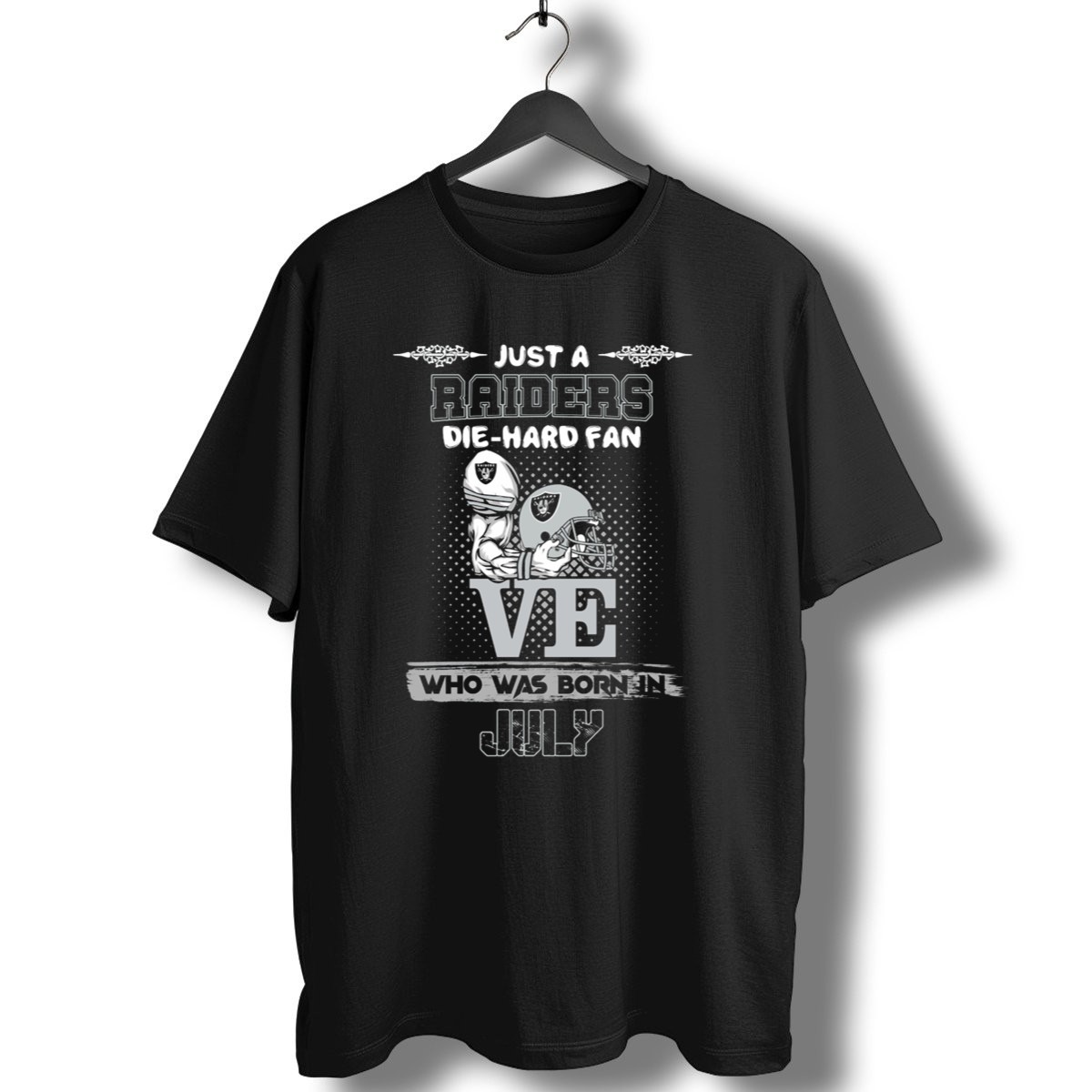 Show off your unwavering support for the Raiders with this fan-made “Just A Raiders Die Hard Fan Who Was Born In July” T-shirt! Perfect for die-hard fans, this shirt is ideal for casual outings, themed events, or simply showcasing your team pride during daily wear. Crafted with care and printed in the USA, this classic tee combines comfort and durability, making it a unique addition to every Raiders enthusiast’s wardrobe.