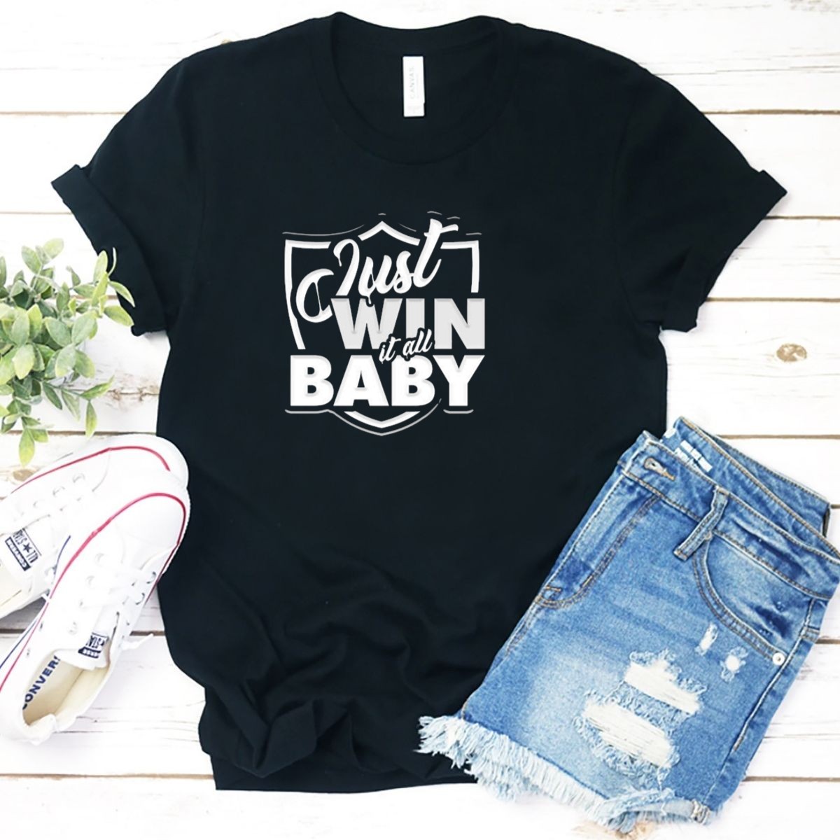 Show your unwavering support for the Las Vegas Raiders with our “Just Win It All Baby” T-shirt! Perfect for die-hard fans and casual wearers alike, this fan-made design features the iconic shield emblem, letting everyone know where your loyalties lie. Whether you’re headed to a game, a themed event, or just hanging out with friends, this shirt is a stylish and comfortable choice for any occasion.