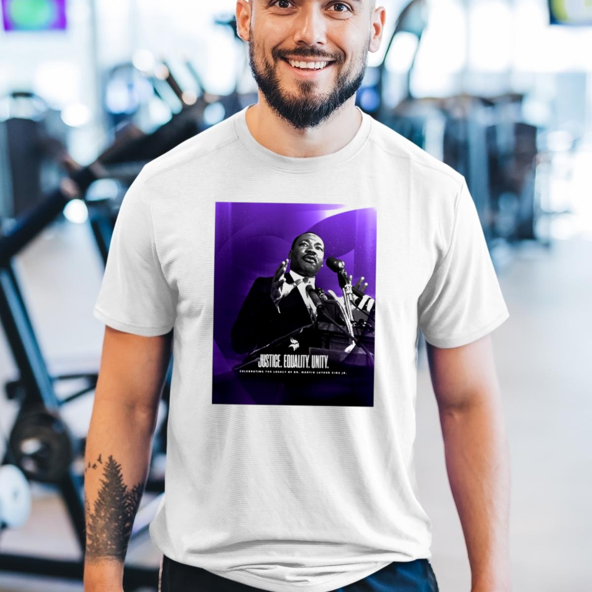 Celebrate justice, equality, and unity with our fan-made Dr. Martin Luther King Jr. T-shirt, designed especially for Minnesota Vikings fans. This comfortable and stylish Gildan 5000 Unisex T-Shirt is perfect for casual wear, themed events, or daily outings. Its vibrant graphic print showcases your support for Dr. King’s legacy while letting you express your love for your favorite team. Made in the USA, this tee combines quality and a powerful message, making it an ideal addition to any wardrobe.