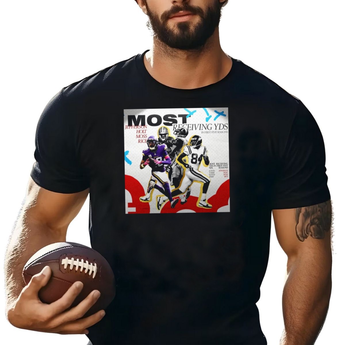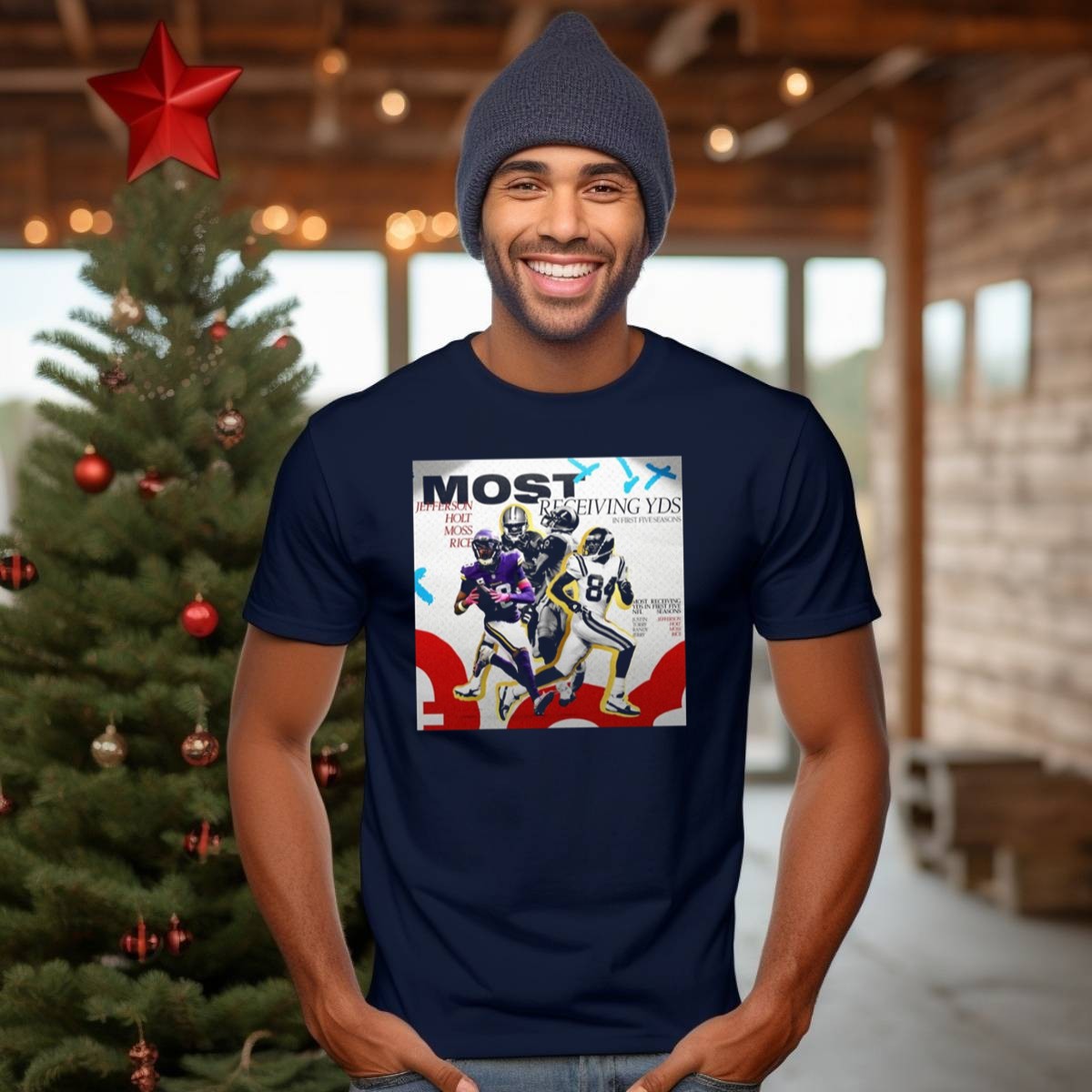 Celebrate the incredible talent of Justin Jefferson with this fan-made graphic T-shirt, perfect for every Minnesota Vikings enthusiast! Whether you’re cheering from the stands, attending a themed event, or simply enjoying a casual day out, this shirt showcases Jefferson’s record-breaking achievements in style. Made with comfort in mind, the classic fit and breathable fabric make it an ideal choice for all-season wear.