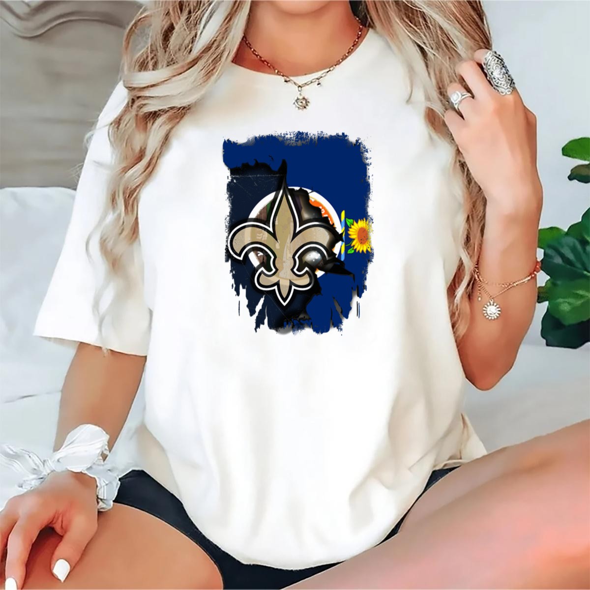 Celebrate your love for Kansas and its vibrant culture with our Kansas Sunflower And Saints Fleur De Lis Harmony Together T-Shirt. This fan-made design beautifully blends the iconic sunflower with the regal fleur de lis, making it the perfect choice for anyone who wants to showcase their pride in a stylish and meaningful way. Ideal for casual wear, themed events, or daily outings, this shirt is crafted for comfort and durability, ensuring you look great no matter where your day takes you.