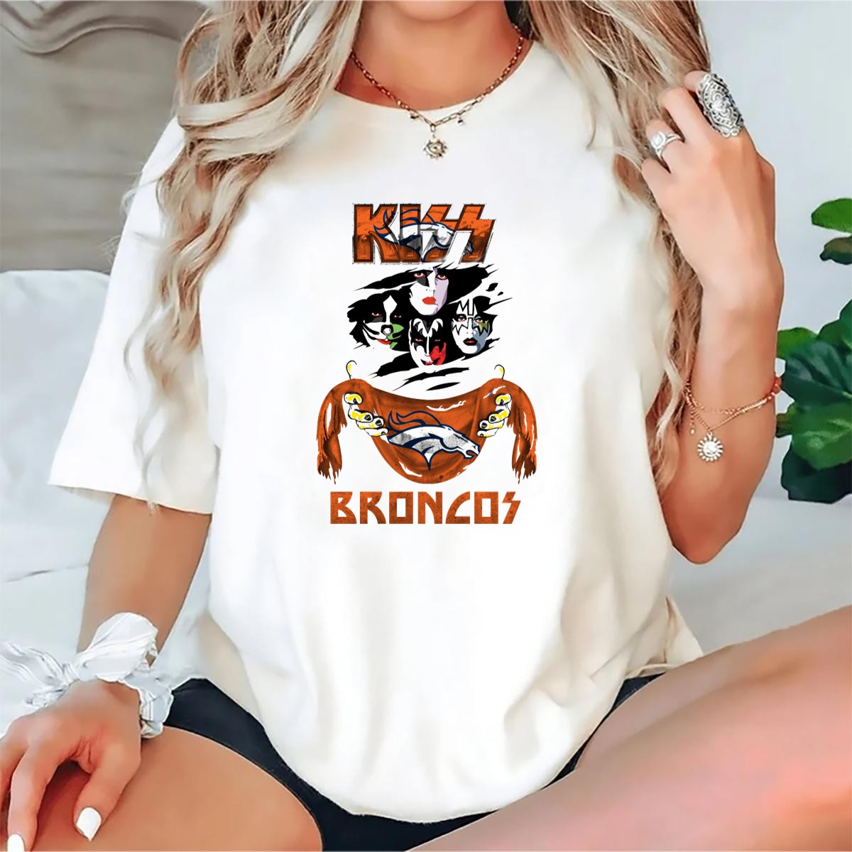 Show your love for rock music and football with our KISS Denver Broncos NFL Rock Band Crossover T-Shirt! This fan-made design seamlessly blends the iconic imagery of KISS with the spirit of the Denver Broncos, making it the perfect choice for die-hard fans and music lovers alike. Whether you’re gearing up for a game day, attending a themed event, or just enjoying a casual day out, this shirt is sure to turn heads and spark conversations. Printed in the USA with high-quality graphics, it embodies the ultimate fusion of style and team pride.