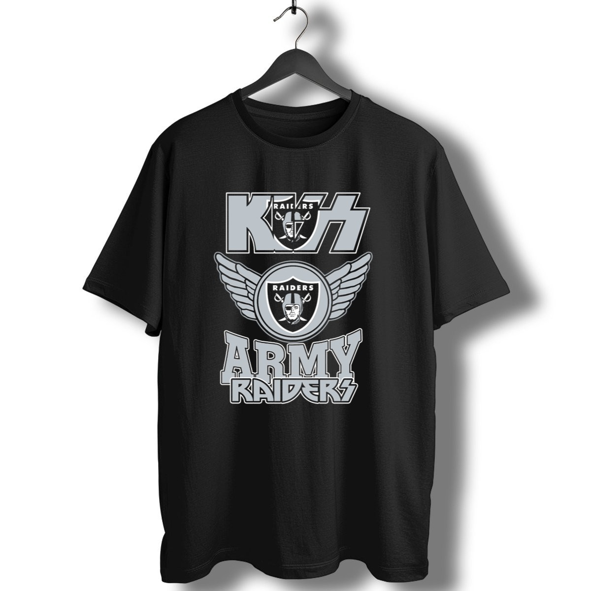 Show your team spirit in style with the Kiss Raiders Army Las Vegas NFL121 T-Shirt! This fan-made design is perfect for die-hard Raiders fans who want to showcase their love for the team in a fashionable way. Ideal for casual outings, themed events, or just lounging around, this shirt combines comfort with a bold statement. Made and printed in the USA, it’s a unique addition to any fan’s wardrobe.