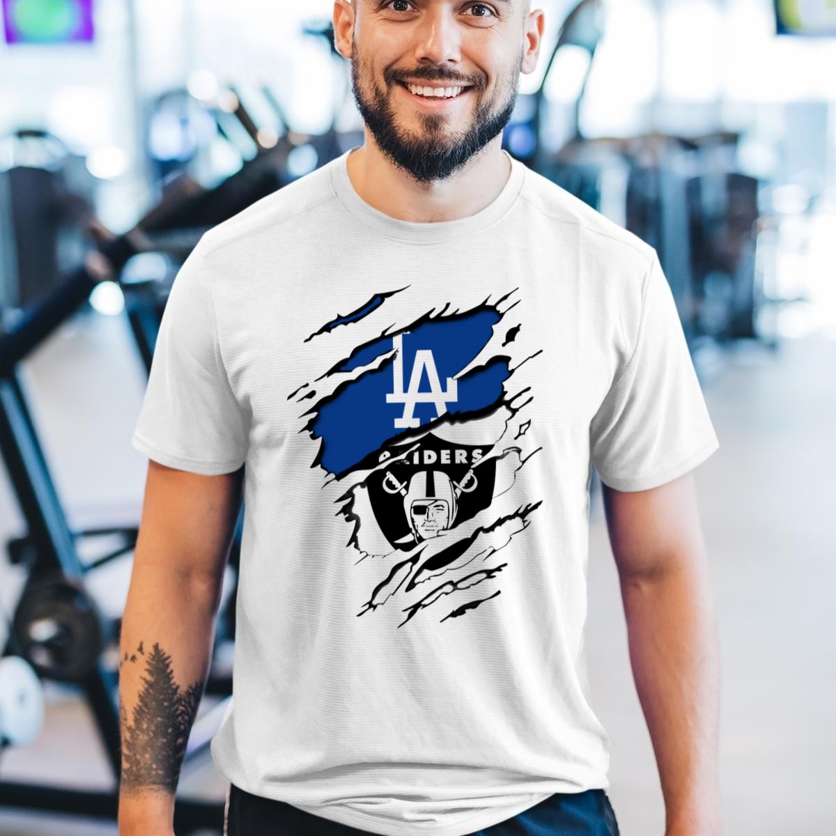 Show your love for two iconic teams with our La Dodgers Raiders Dual Logo Crossover T-Shirt! Perfect for fans who want to represent both the Dodgers and Raiders, this unique shirt is ideal for casual outings, themed events, or simply lounging around. Made for comfort and style, this fan-made design is proudly printed in the USA, ensuring you stand out while supporting your favorite teams.