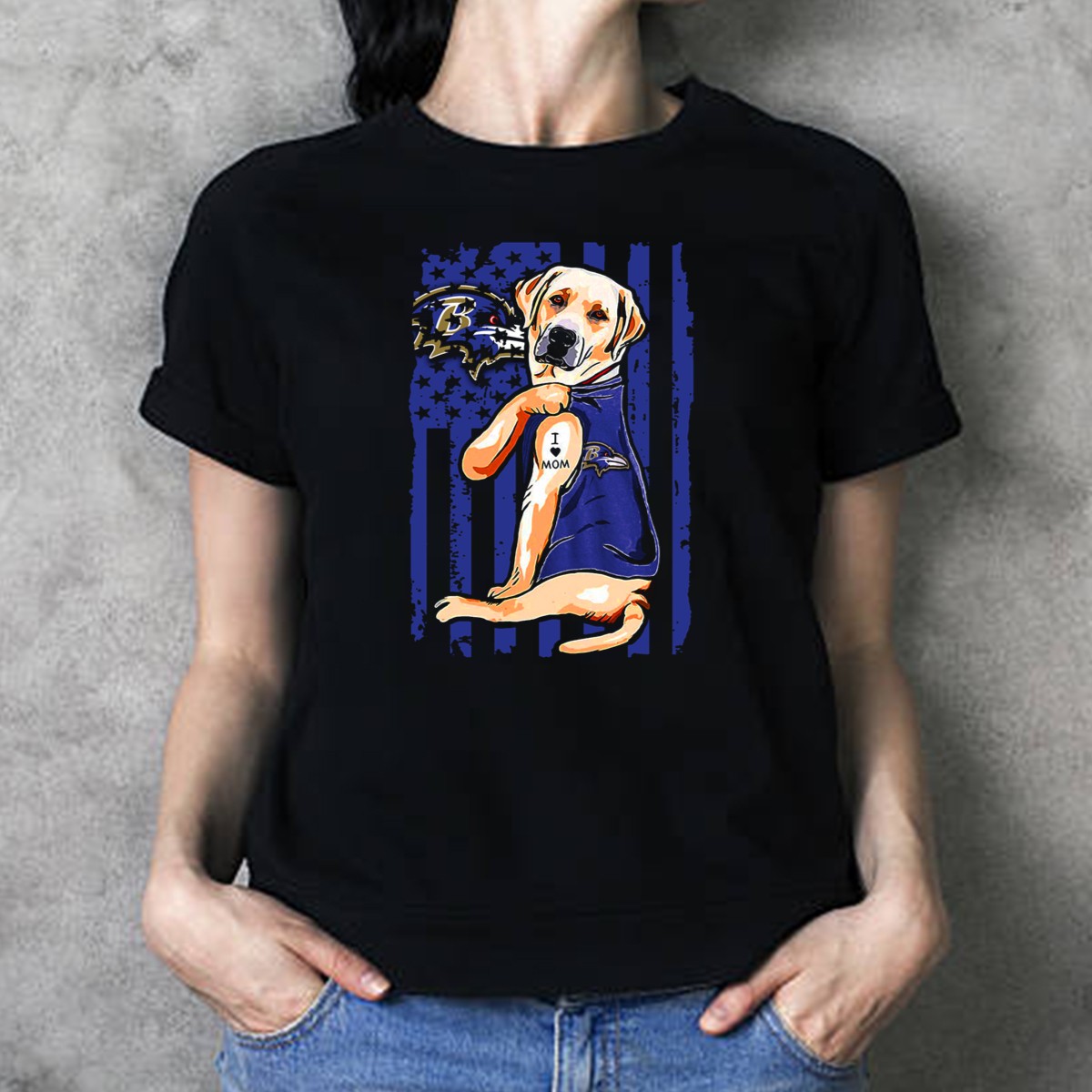 Show off your love for both your favorite football team and your furry friend with our Labrador Retriever in Baltimore Ravens Jersey with I Love Mom Tattoo T-Shirt! This unique and fan-made design is perfect for dog lovers and football enthusiasts alike. Whether you’re at a game, hosting a themed event, or enjoying a casual day out, this shirt will keep you stylish and comfortable all season long.