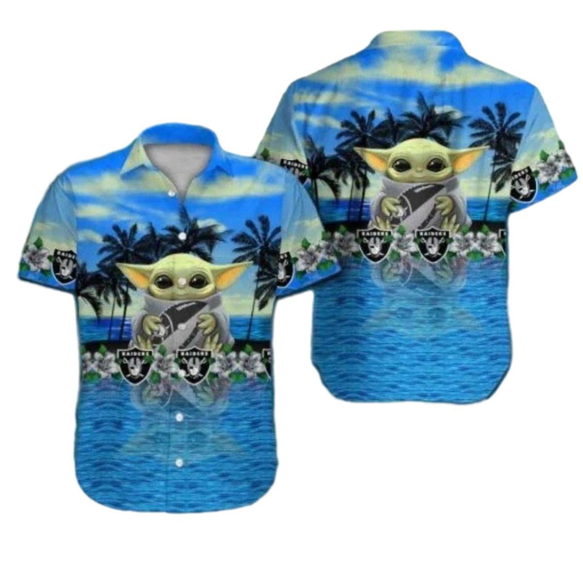 Elevate your summer wardrobe with our Las Vegas Raiders Baby Yoda And Tropical Vibes Hawaiian Shirt, specially designed for fans who want to showcase their love for the game while embracing the laid-back island spirit. Perfect for beach days, barbecues, or casual outings, this shirt effortlessly combines playful graphics with a relaxed vibe, making it a must-have for any casual occasion.