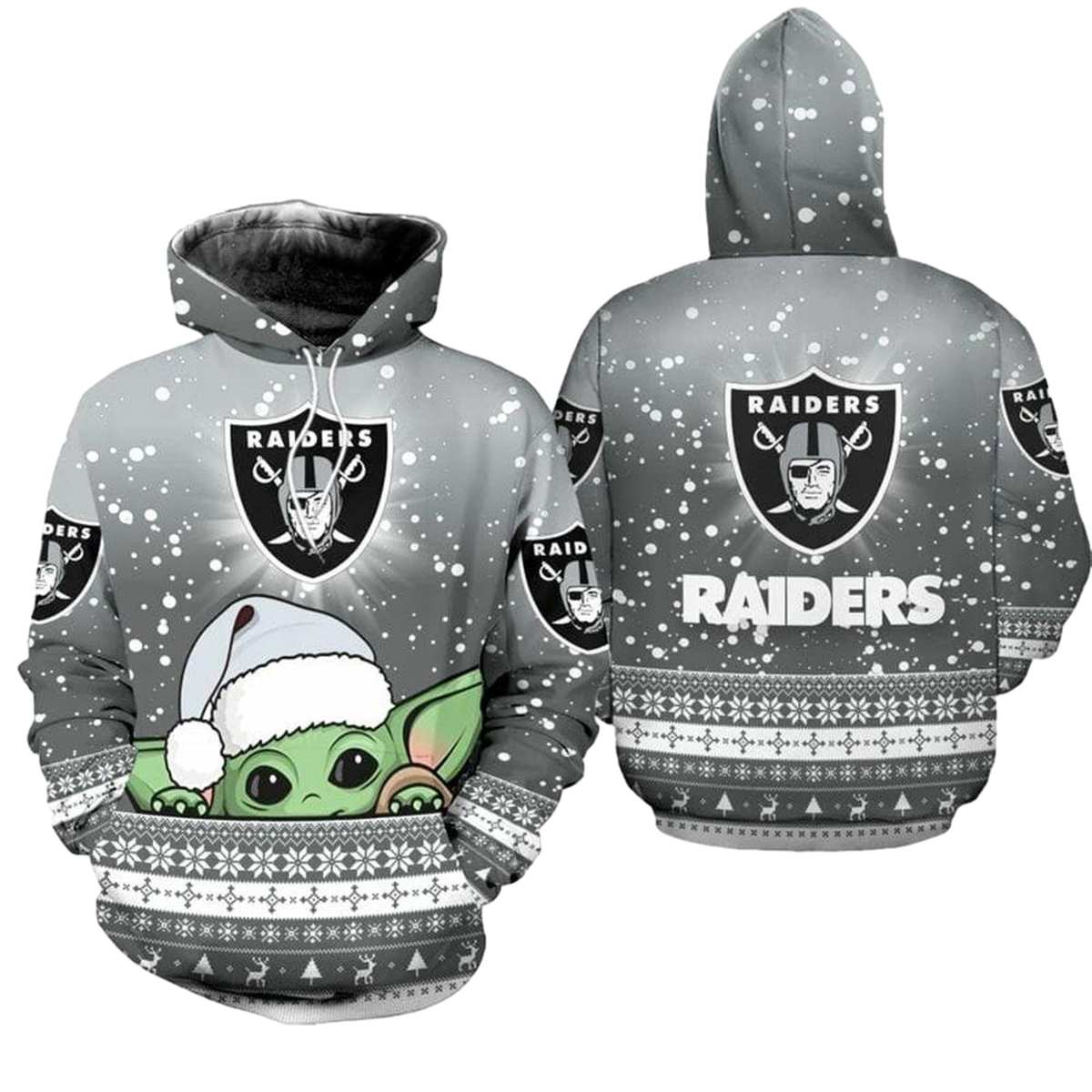 Las Vegas Raiders Baby Yoda Christmas Football AOP Hoodie