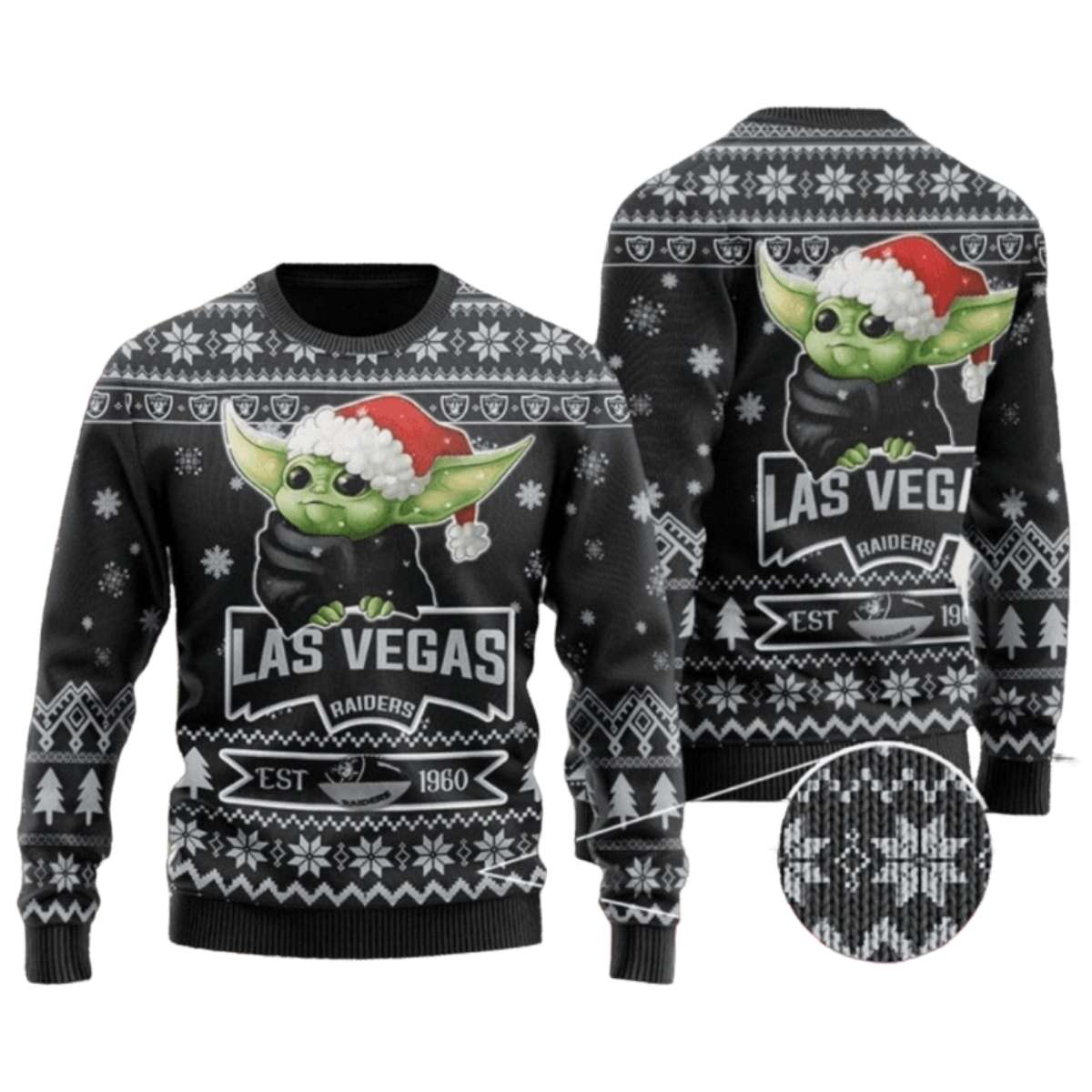 Get ready to bring some holiday cheer to the gridiron with our Las Vegas Raiders Baby Yoda Holiday Cheer Ugly Christmas Sweater! Perfect for die-hard Raiders fans and lovers of all things adorable, this sweater is your go-to choice for parties, family gatherings, or cozy nights at home. Its unique design featuring Baby Yoda adds a playful twist to your festive wardrobe, making it a standout piece for any occasion!