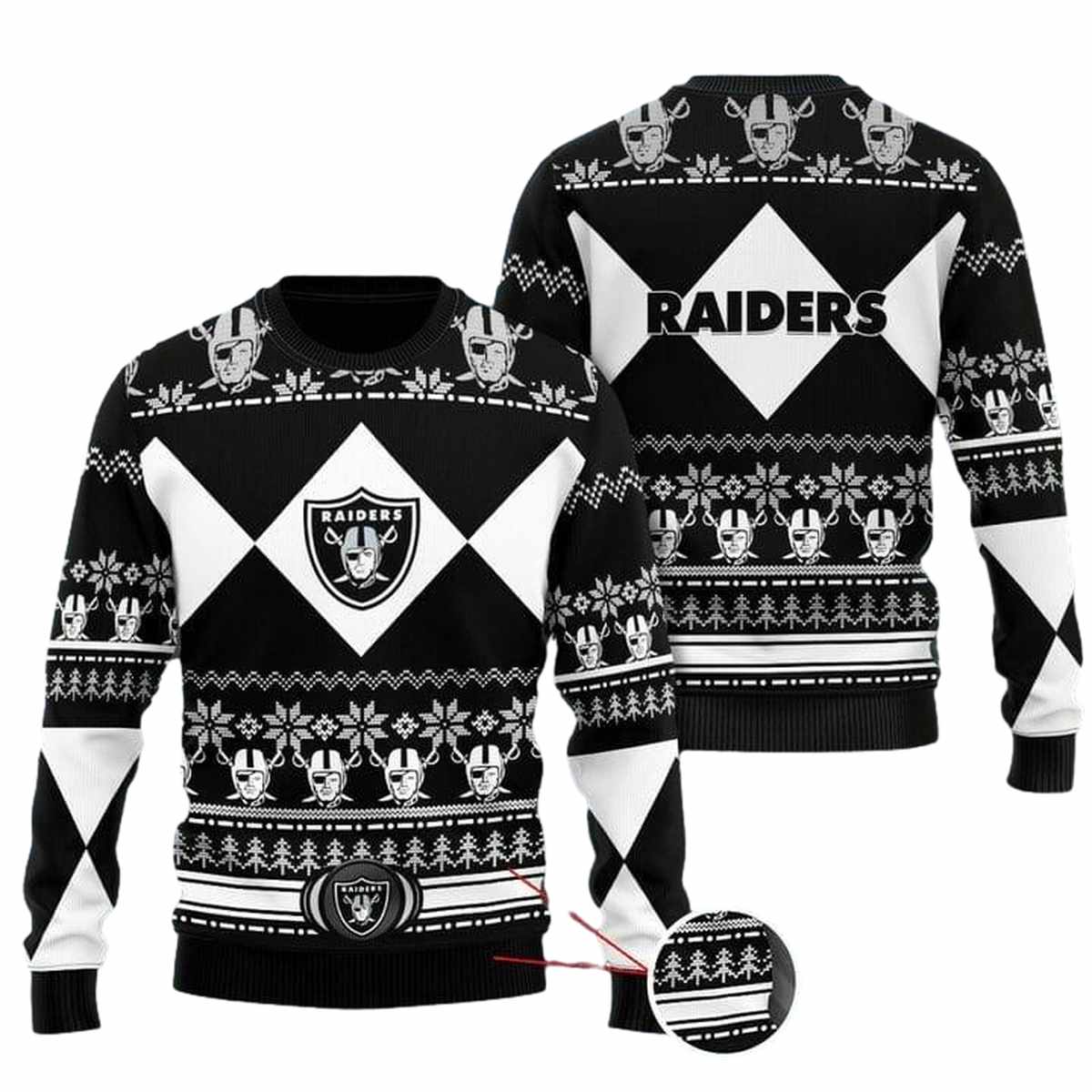 Get ready to show off your team spirit with our Las Vegas Raiders Black White Christmas Ugly Sweater! Perfect for die-hard fans and holiday enthusiasts alike, this sweater brings a playful twist to your winter wardrobe. Whether you’re cheering from the stands or enjoying a cozy night in, this unique piece is sure to turn heads and spread festive cheer.