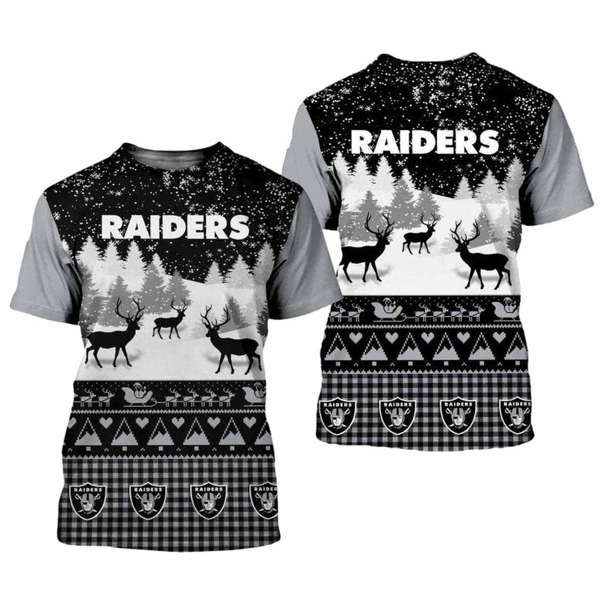 Get ready to celebrate the festive season in style with our Las Vegas Raiders Christmas Pattern AOP T-Shirt! Perfect for fans who want to showcase their team spirit while spreading holiday cheer, this shirt is a delightful blend of casual comfort and eye-catching graphics. Whether you’re heading to a game, a holiday party, or just enjoying a cozy day at home, this T-shirt makes a unique statement that’s sure to turn heads.