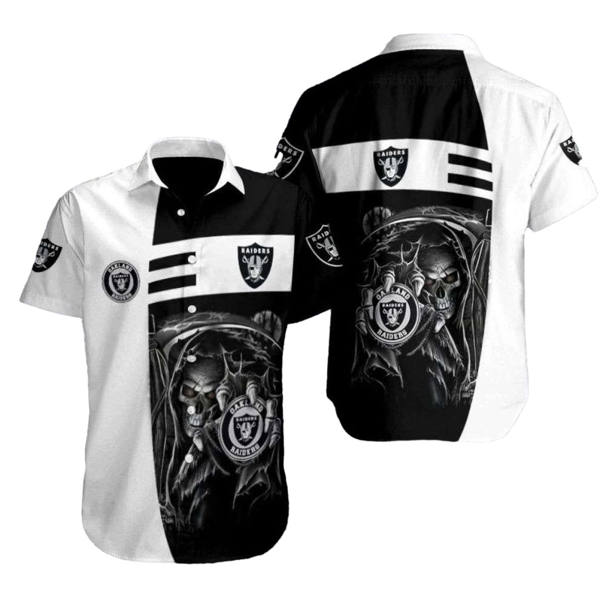 Step into the vibrant spirit of summer with our Las Vegas Raiders Dead Skull Hold Logo Hawaiian Shirt. Perfect for fans and trendsetters alike, this shirt is an ideal choice for beach days, barbecues, or casual outings. Its eye-catching graphic design showcases your team pride while giving off a relaxed vibe that stands out wherever you go.