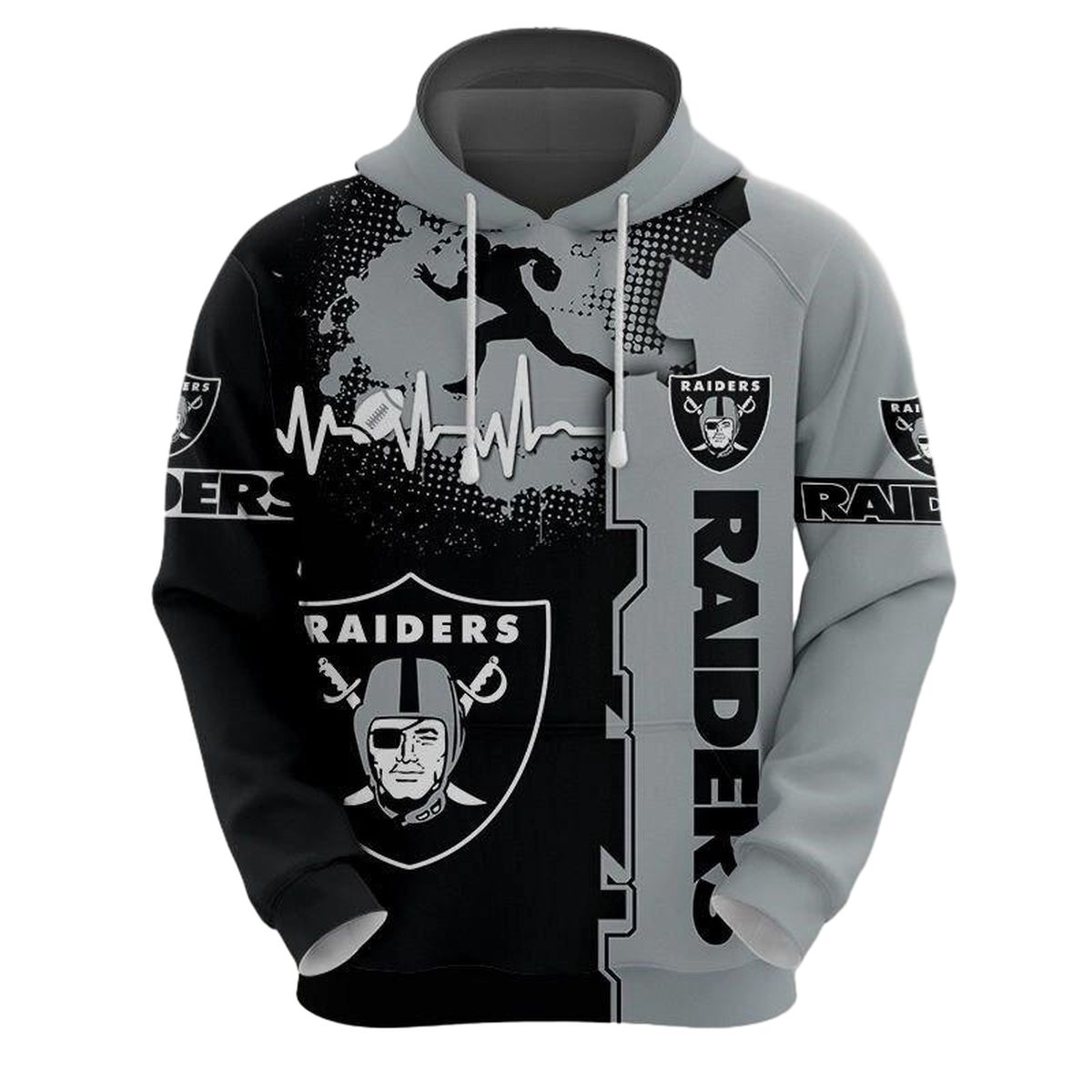 Celebrate your passion for the Las Vegas Raiders with this unique Graphic Heart ECG Line All-Over Print Hoodie. Designed for fans who love to showcase their team spirit, this cozy yet lightweight hoodie is perfect for daily wear or casual outings, making it a must-have for any true supporter. Its standout graphic design and relaxed fit ensure you stay comfortable while representing your team in style.