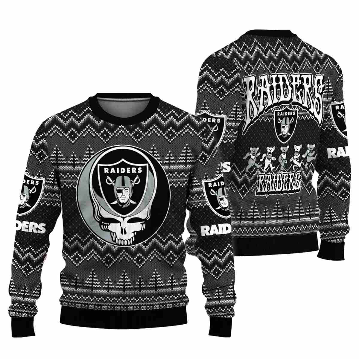 Get ready to deck the halls with a twist of rock ‘n’ roll and football spirit! Our Las Vegas Raiders Grateful Dead Bear Ugly Christmas Sweater is the perfect way to bring some fun to your winter wardrobe. Ideal for die-hard fans and festive enthusiasts alike, this unique sweater is a must-have for holiday parties, cozy gatherings, or simply lounging at home while showcasing your love for two iconic cultures.