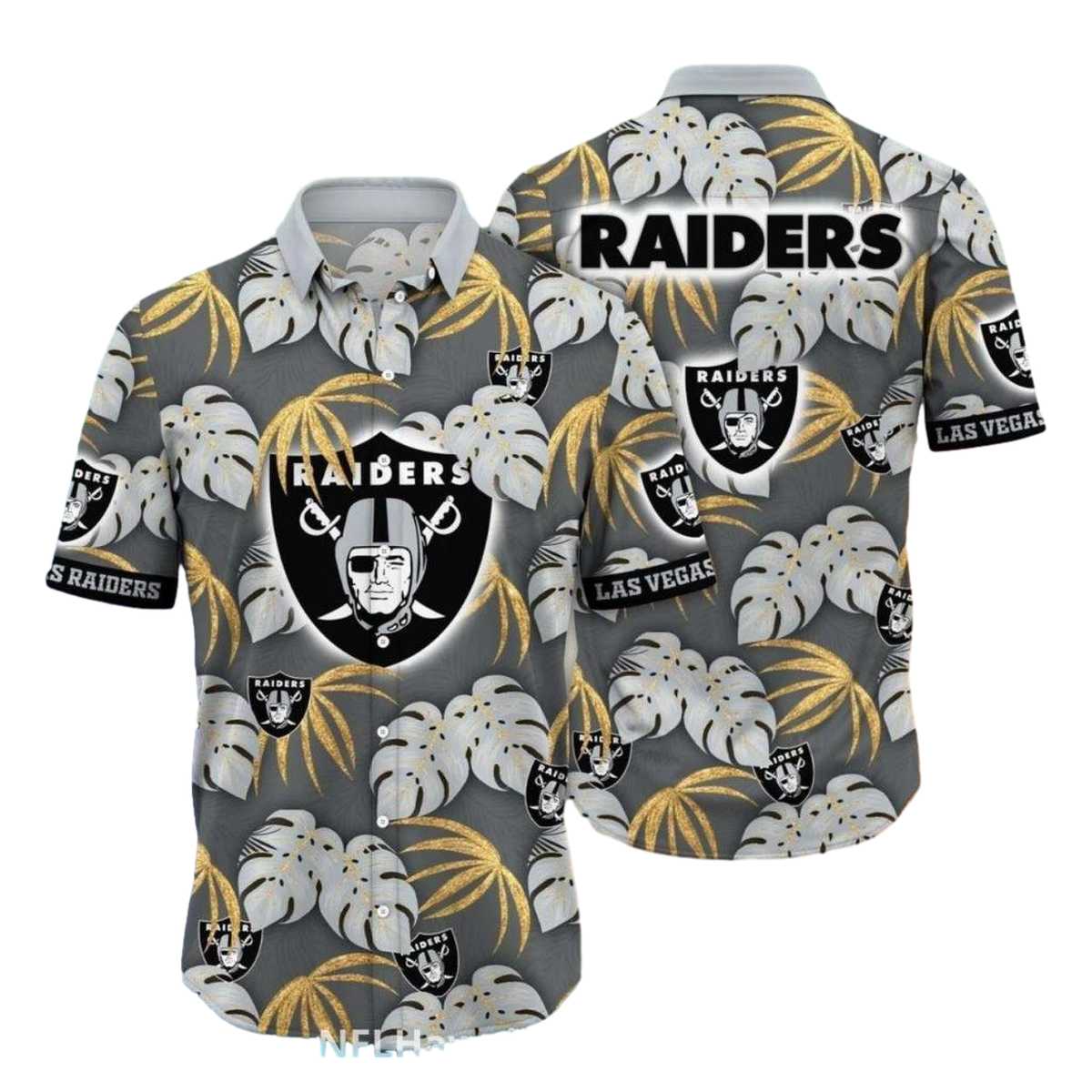Las Vegas Raiders Gray And Gold Palm Leaf Hawaiian Shirt