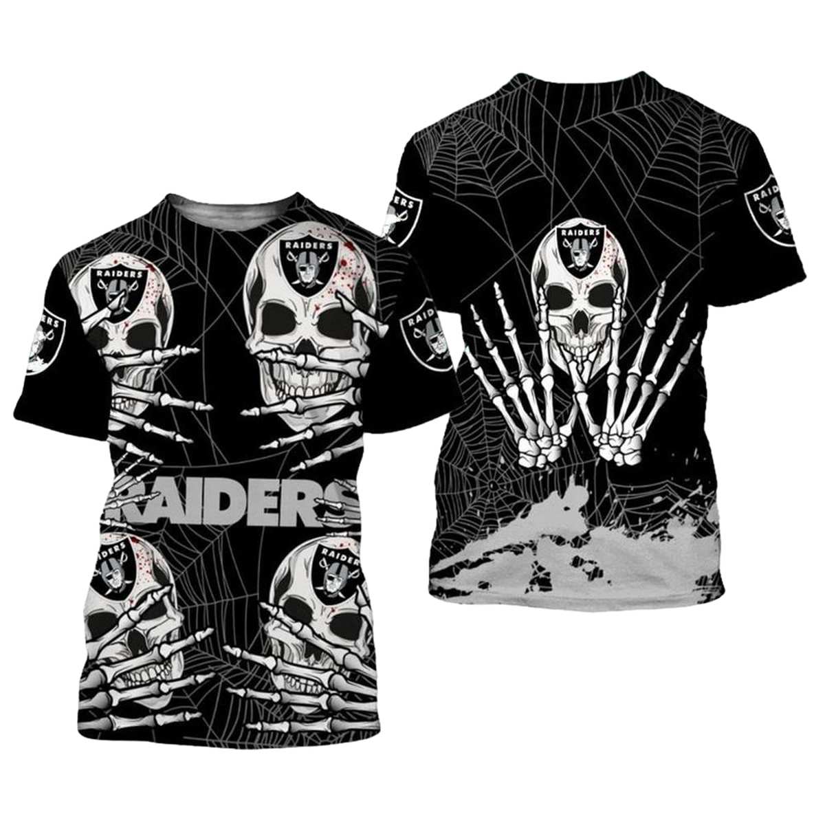 Get ready to show off your team spirit with our Las Vegas Raiders Hand Skull for Halloween Spider Web Pattern AOP T-shirt! This unique graphic tee is perfect for die-hard fans and those who love to stand out during the spooky season. Whether you’re at a game, a Halloween party, or just hanging out with friends, this shirt adds a touch of creativity and excitement to any casual outfit.