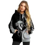 Crafted from 100% high-grade polyester knit fabric with a brushed fleece lining, this hoodie offers a lightweight yet cozy feel. It features dropped shoulders, a convenient pouch pocket, and self-fabric cuffs and waistband, making it both functional and fashionable. The durable all-over print showcases your love for the Raiders, ensuring you stand out in any crowd.