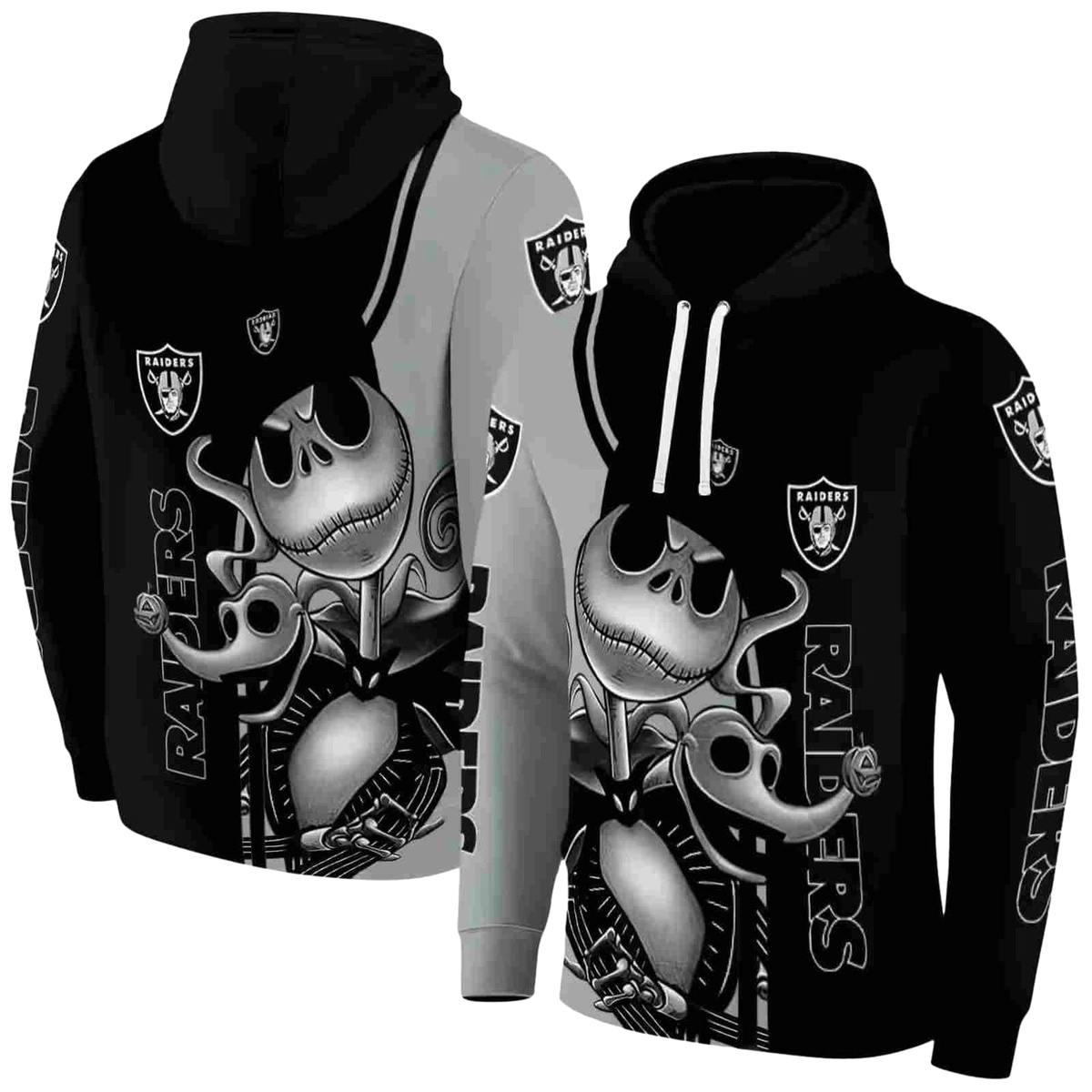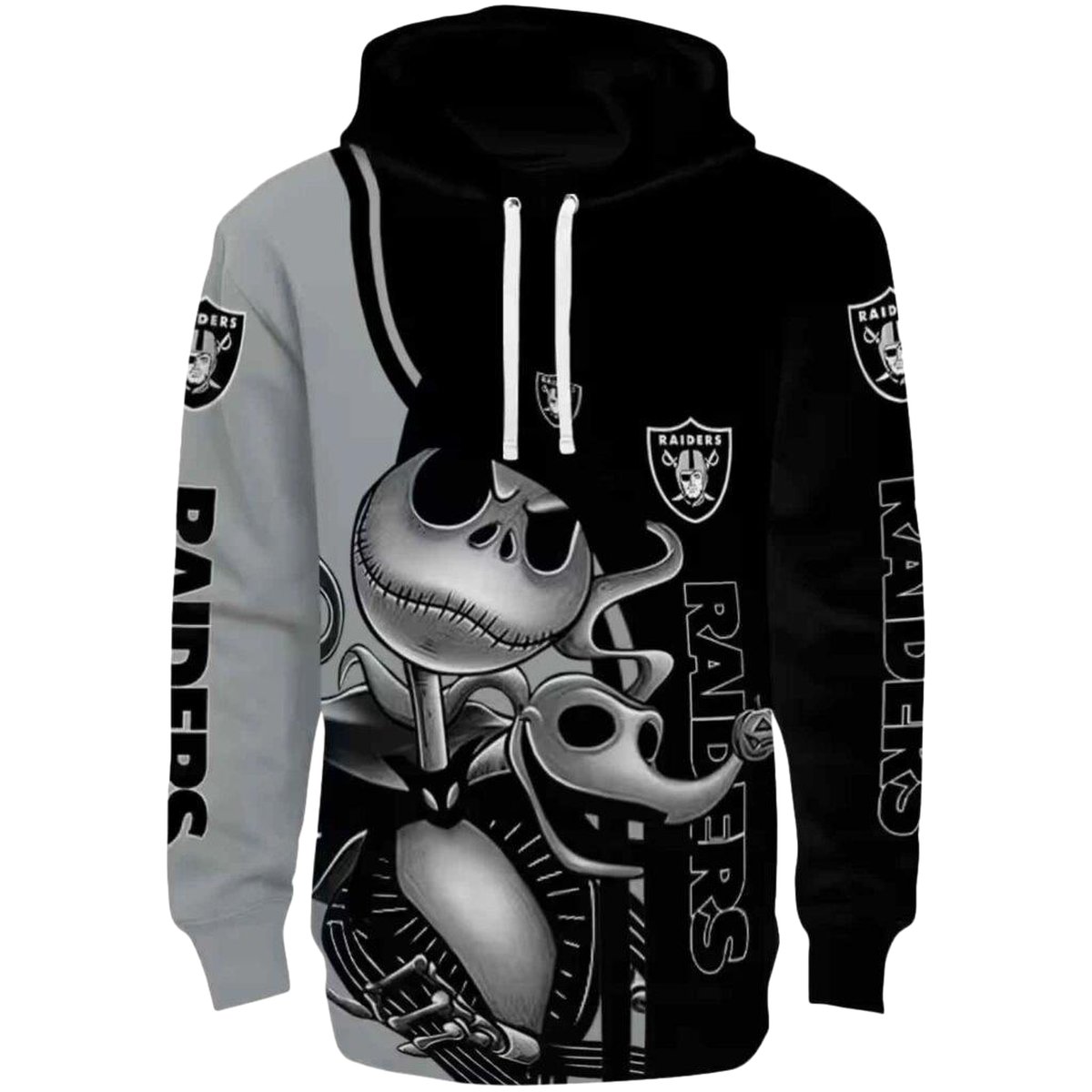 Embrace the spirit of adventure with our Las Vegas Raiders Jack Skellington Black AOP Hoodie, perfect for fans who blend love for football with a touch of Halloween magic. This unique piece is designed for anyone looking to showcase their team pride while staying cozy and stylish, making it ideal for daily wear or casual outdoor activities during the cooler winter months.