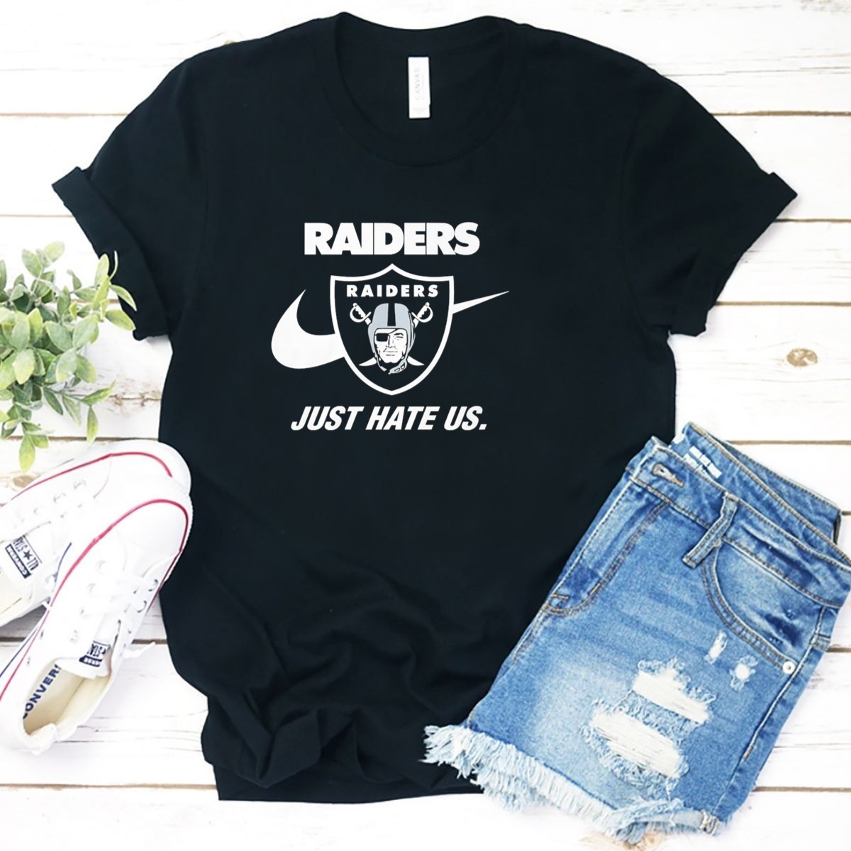 Show off your team spirit with our Las Vegas Raiders Just Hate Us Styled T-Shirt, perfect for true fans who love to make a statement. This eye-catching design is ideal for casual outings, game days, or themed events, allowing you to flaunt your loyalty in style. Made with comfort and durability in mind, this shirt will quickly become a staple in your wardrobe, letting everyone know where your allegiance lies!