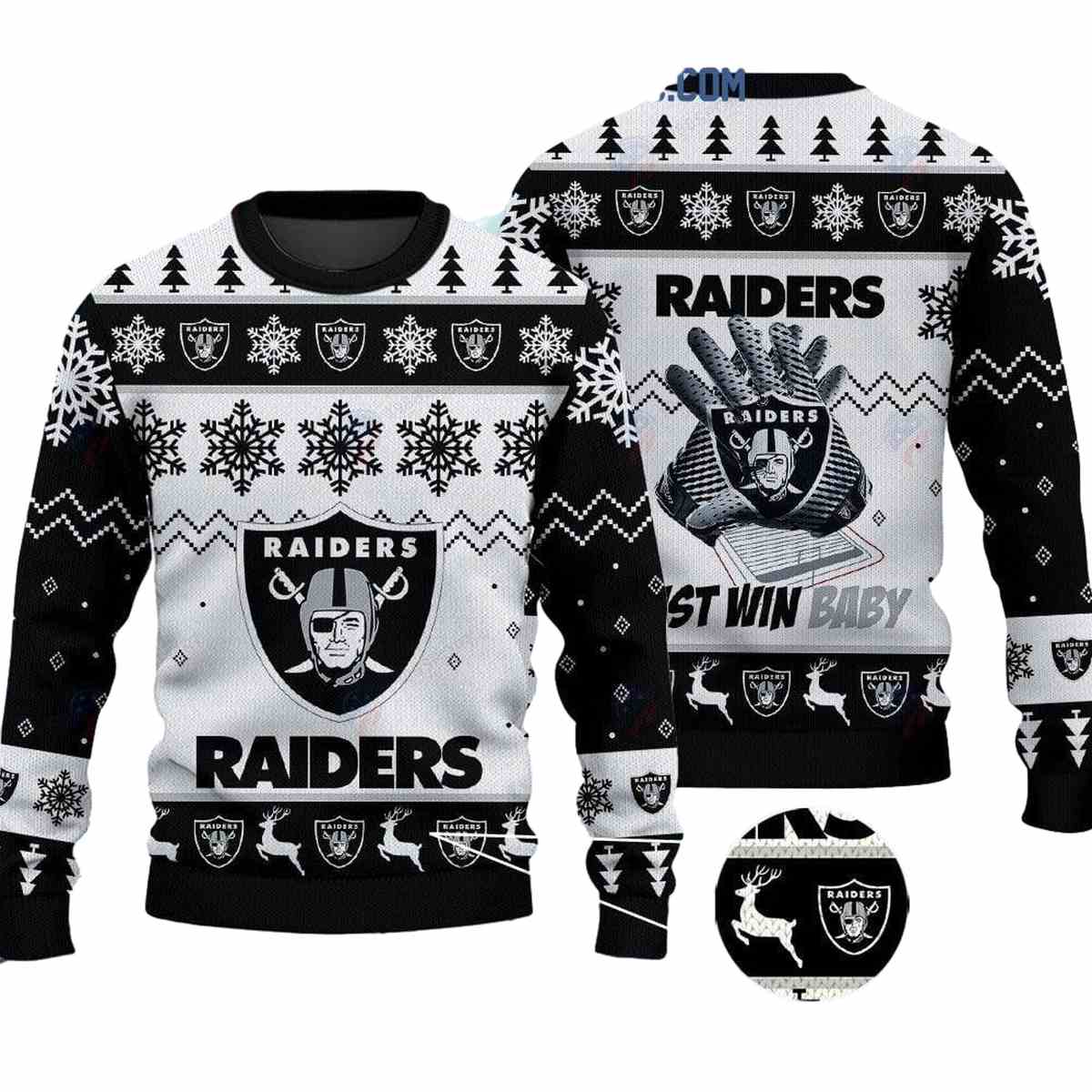 Get ready to show off your team spirit this holiday season with our Las Vegas Raiders Just Win Baby Christmas Ugly Sweater! Perfect for die-hard fans and holiday revelers alike, this sweater adds a touch of festive fun to any winter gathering. Whether you’re cheering from the stands, hosting a holiday party, or simply lounging at home, this sweater ensures you stay cozy and stylish while celebrating your love for the Raiders.