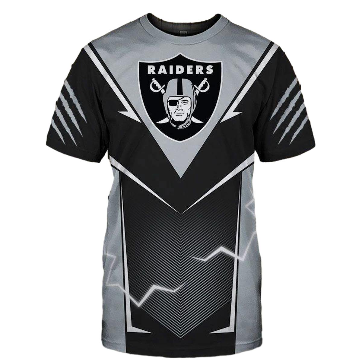 Show your team spirit with our Las Vegas Raiders Lightning Graphic AOP T-shirt, designed for ultimate fans looking to make a statement. Perfect for game days, casual outings, or just lounging at home, this T-shirt combines sporty style with creative flair, making it a unique addition to any wardrobe.