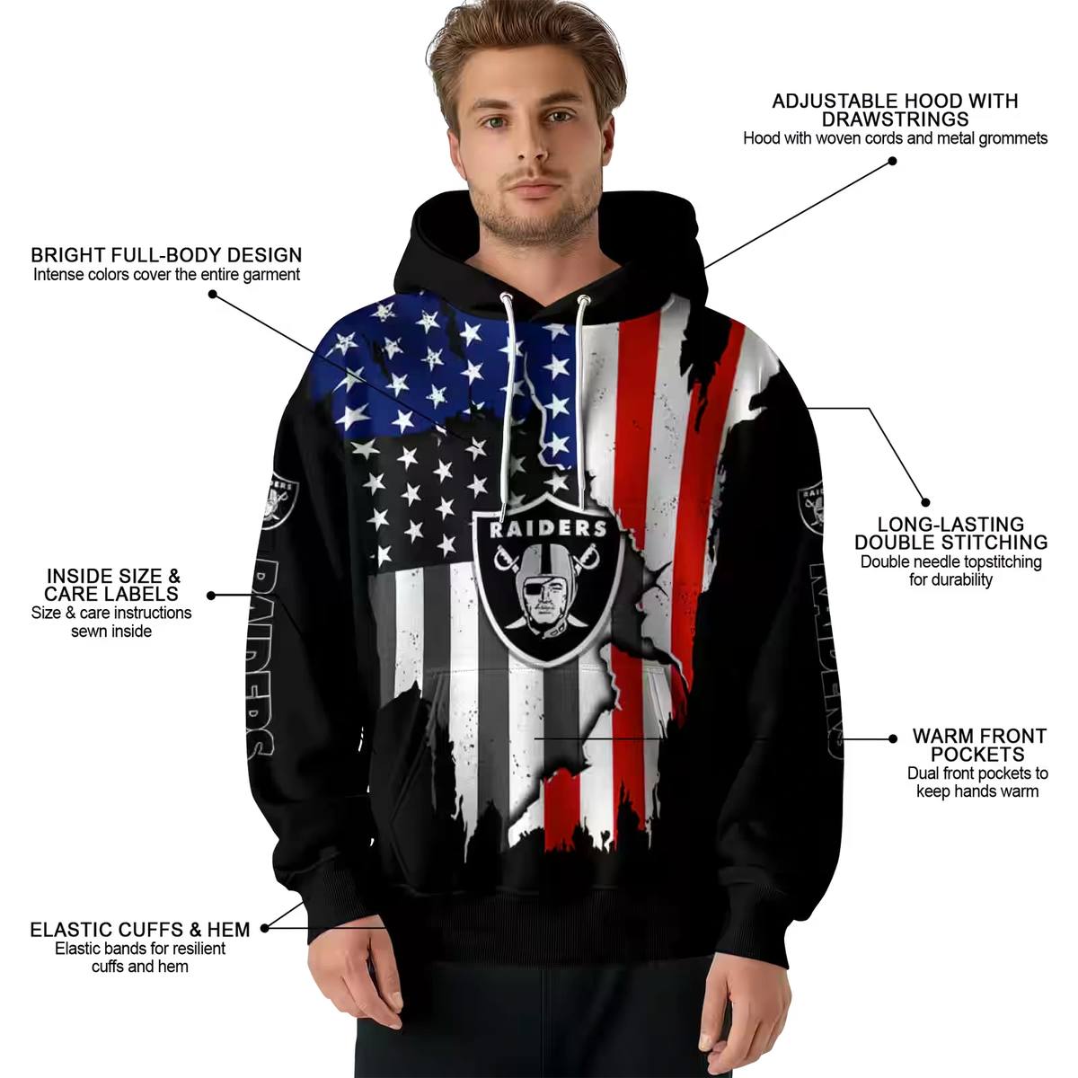 Embrace your passion for football and American pride with our Las Vegas Raiders Logo and American Pride Black All-Over Print Hoodie. This hoodie is perfect for fans who want to showcase their team spirit while staying comfortable and stylish. Whether you’re cheering from the stands or enjoying a casual day out, this unique design makes a bold statement.