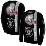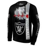 Crafted from high-quality polyester with a soft, high-density brushed fleece lining, this sweatshirt feels cozy against the skin while keeping you warm and breathable. The vibrant print showcases the Raiders logo and heartbeat design, ensuring it remains striking even after multiple washes.