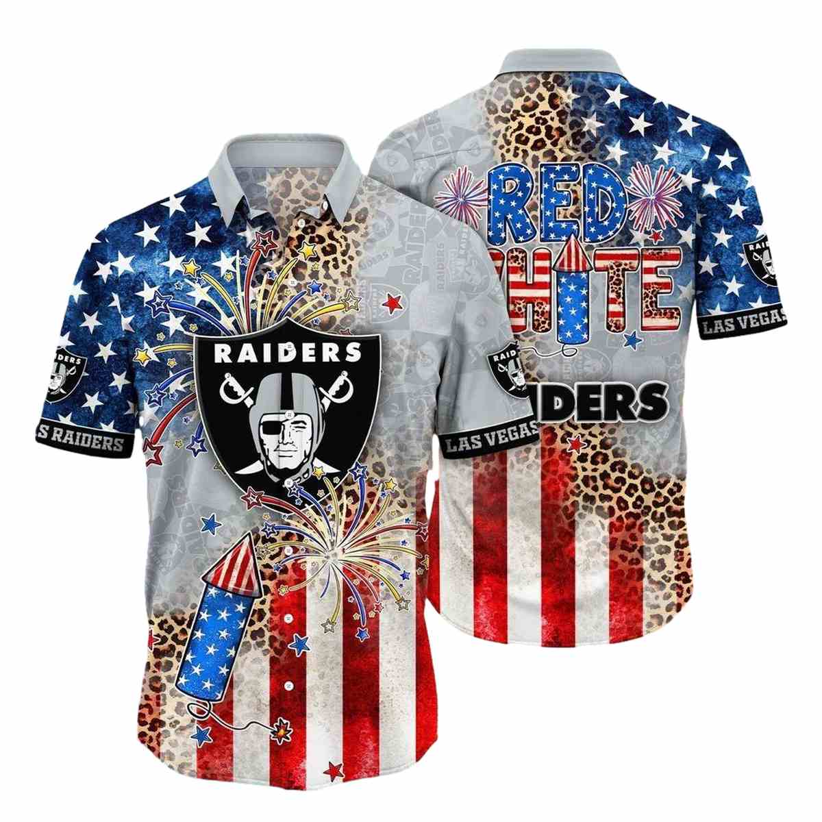 Celebrate your love for the Las Vegas Raiders and the spirit of Independence Day with our vibrant Hawaiian shirt, designed for fans who want to stand out in style. Perfect for summer outings, barbecues, or game day gatherings, this shirt brings a unique blend of team pride and festive flair, making it a must-have for any true supporter.