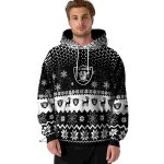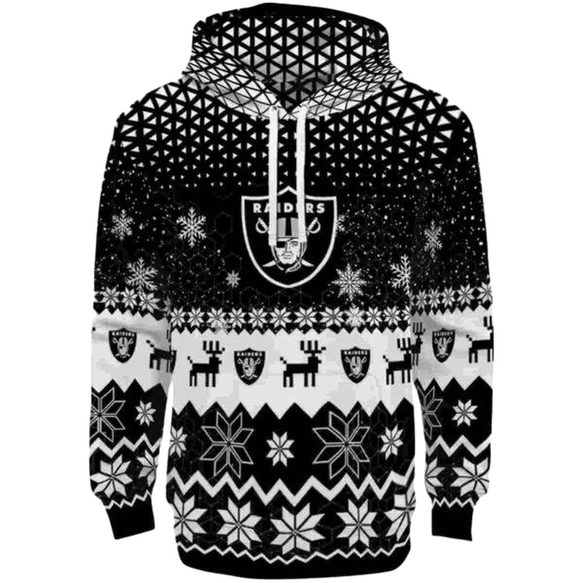 Show off your team spirit this winter with our Las Vegas Raiders Logo And Reindeer Ugly Motif Black AOP Hoodie. Perfect for die-hard fans and casual wearers alike, this hoodie combines a festive design with a relaxed fit, making it an ideal choice for cozy gatherings, game days, or casual outings in cooler weather. Its unique all-over print sets it apart, ensuring you stand out while showcasing your love for the Raiders.