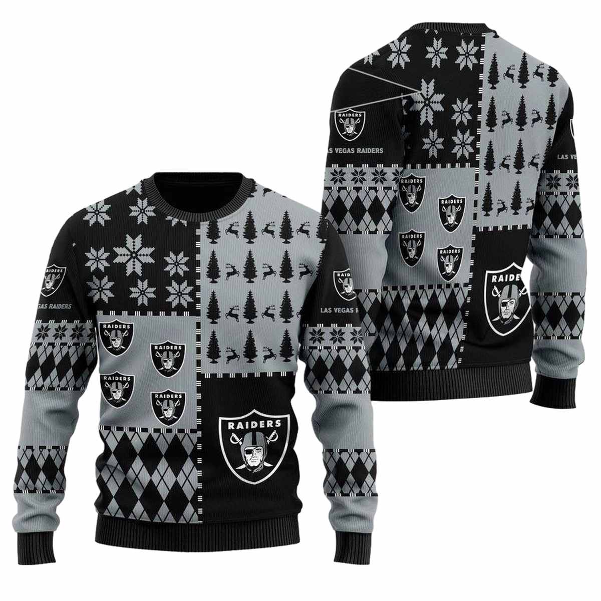 Crafted from a cozy blend of 95% polyester and 5% spandex, this sweater offers a relaxed fit for all-day comfort. The all-over sublimated print ensures bold graphics that won’t fade, even after countless washes. Pair it effortlessly with your favorite jeans or dress it up for a holiday event, and let your love for the Raiders shine through while staying comfortable and chic!