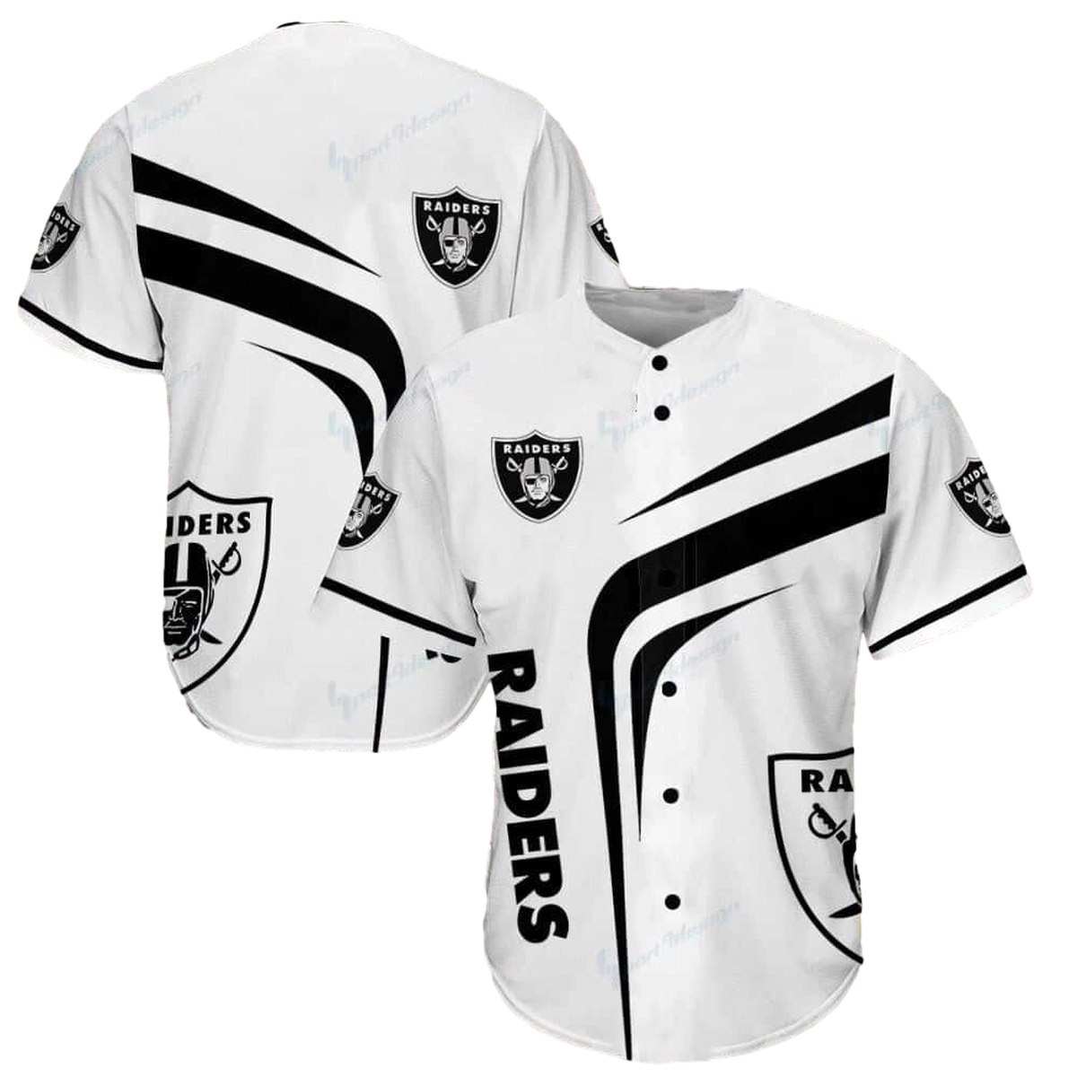 Show off your team spirit with our custom all-over printed baseball jersey featuring the iconic Las Vegas Raiders logo. Perfect for game day or casual outings, this jersey combines sporty style with a relaxed fit, making it an ideal choice for athletes and fans alike. Whether you’re at the stadium or hanging out with friends, this jersey is designed to make you stand out.