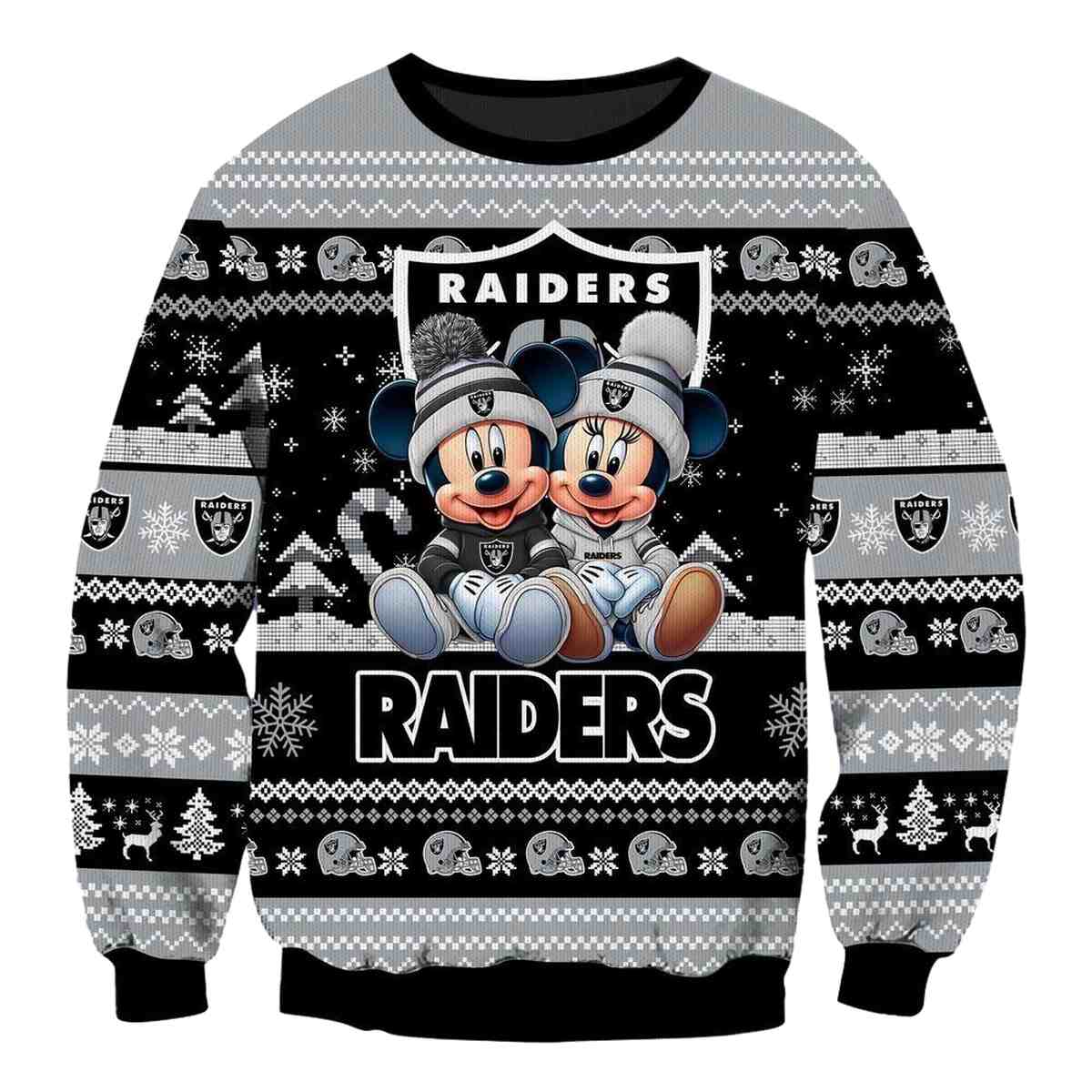 Get ready to score big this holiday season with our Las Vegas Raiders Mickey and Minnie Cute Christmas Ugly Sweater! Perfect for fans who want to showcase their team spirit in a festive way, this sweater is ideal for holiday parties, cozy nights at home, or cheering on your favorite team. Its unique design combines beloved characters with a sporty flair, bringing joy and cheer to your winter wardrobe.