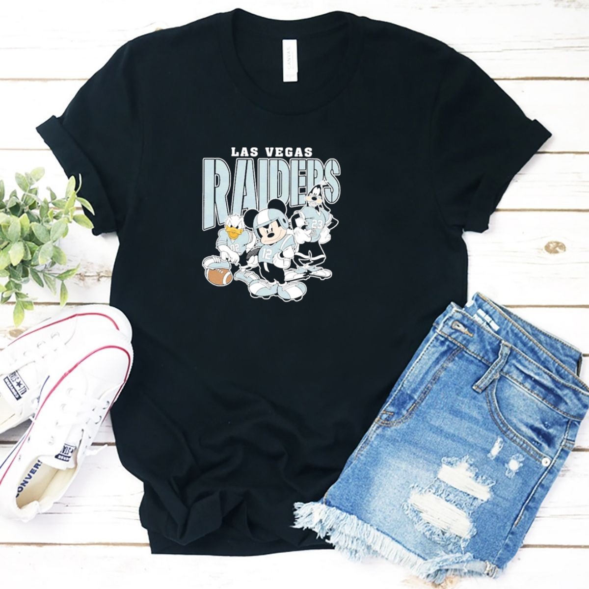 Show off your love for football and Disney with this unique fan-made T-shirt featuring Mickey Mouse, Donald Duck, and Goofy cheering on the Las Vegas Raiders! Perfect for game day, themed events, or casual outings with friends, this shirt combines your favorite characters with your favorite team, making it a must-have for any Raiders fan. Crafted for comfort and style, it’s designed to be your go-to shirt for all-season fun.
