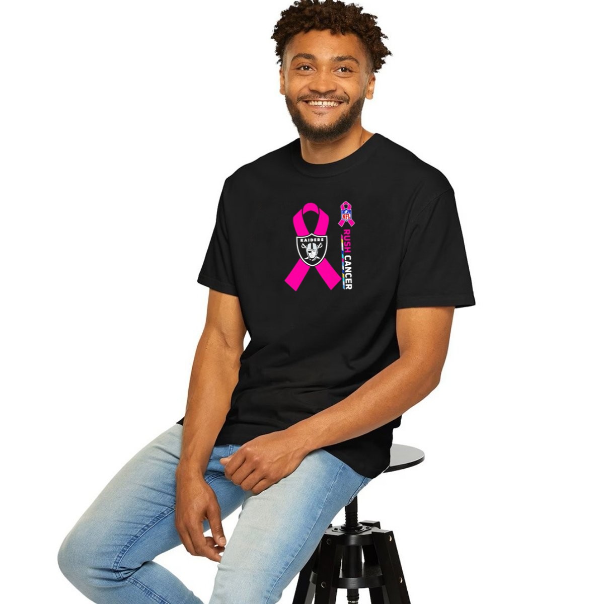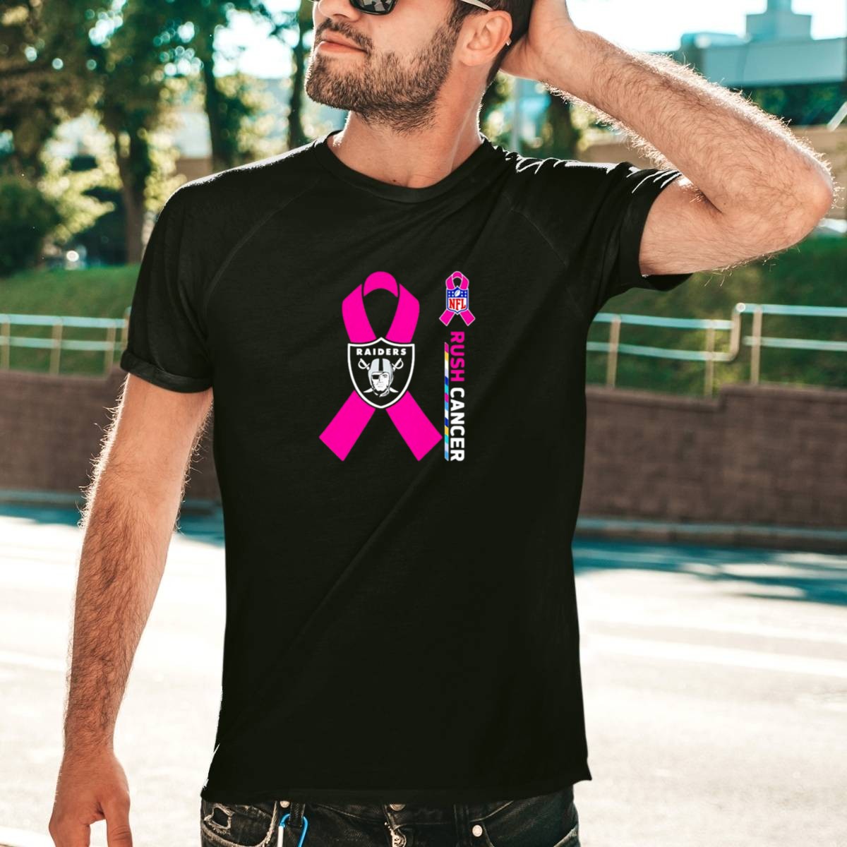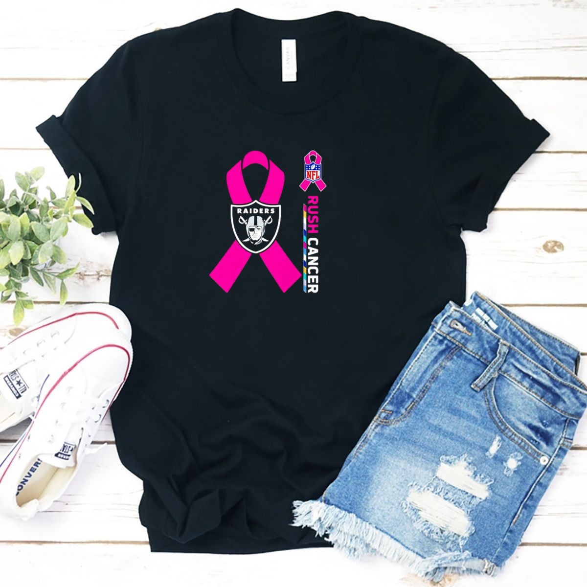 Las Vegas Raiders Nfl Rush Cancer Pink Ribbon Awareness Promo T-Shirt