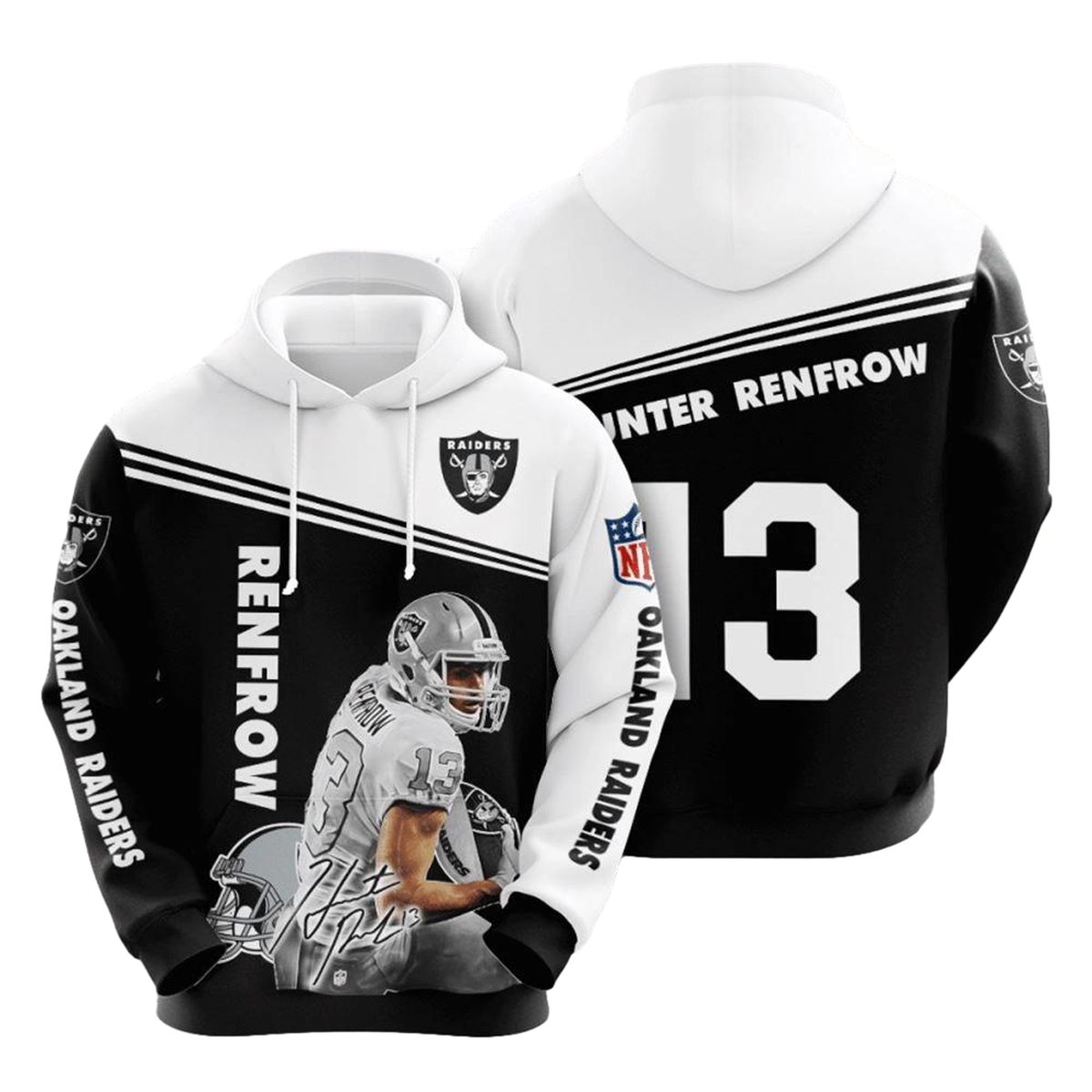 Show your team spirit with the Las Vegas Raiders Renfrow Signature AOP Hoodie, designed for die-hard fans who want to stand out in style. Perfect for casual outings, game day gatherings, or just lounging around, this hoodie combines comfort and flair, making it a must-have for any Raiders enthusiast.