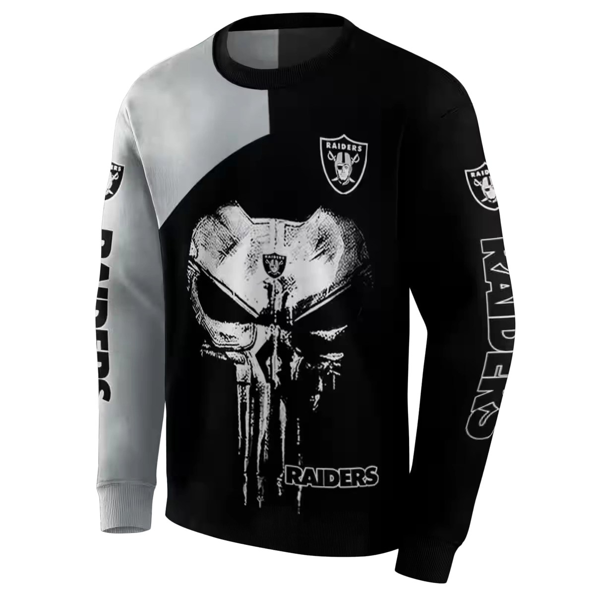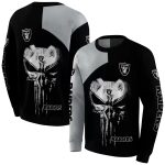 Unleash your bold side with the Las Vegas Raiders Skull Punisher Silver Black AOP Sweatshirt, a must-have for any die-hard fan. Perfect for game days, casual outings, or just lounging at home, this sweatshirt combines fierce style with everyday comfort. Its striking all-over print showcases your love for the Raiders while making a statement wherever you go.