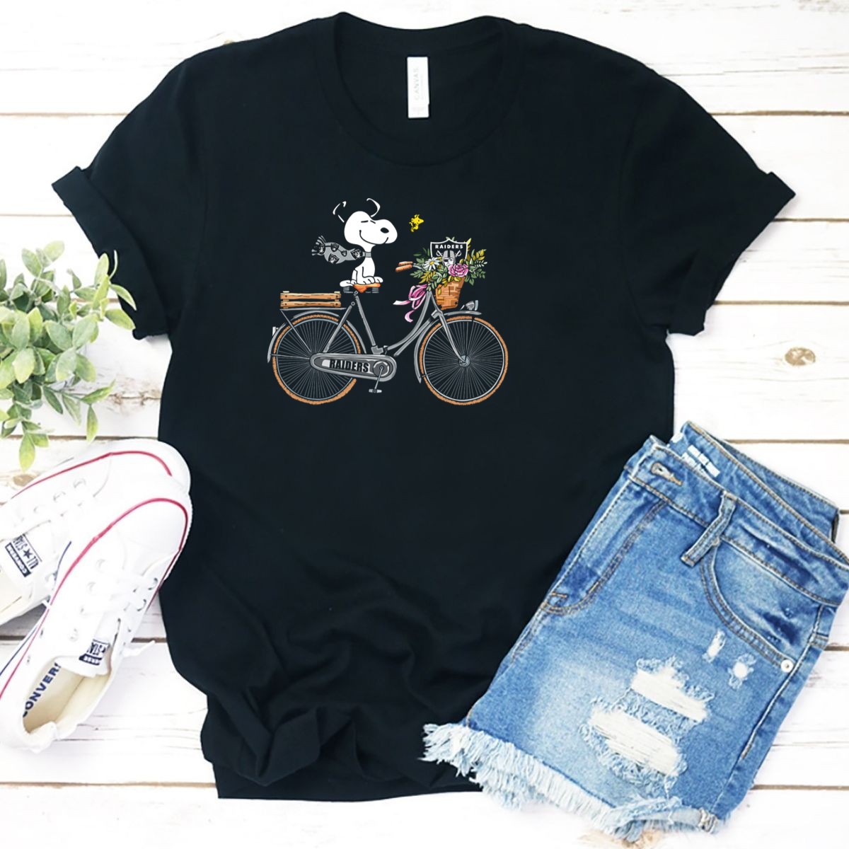 Las Vegas Raiders Snoopy Bicycle Adventure With Woodstock And Flowers T-Shirt