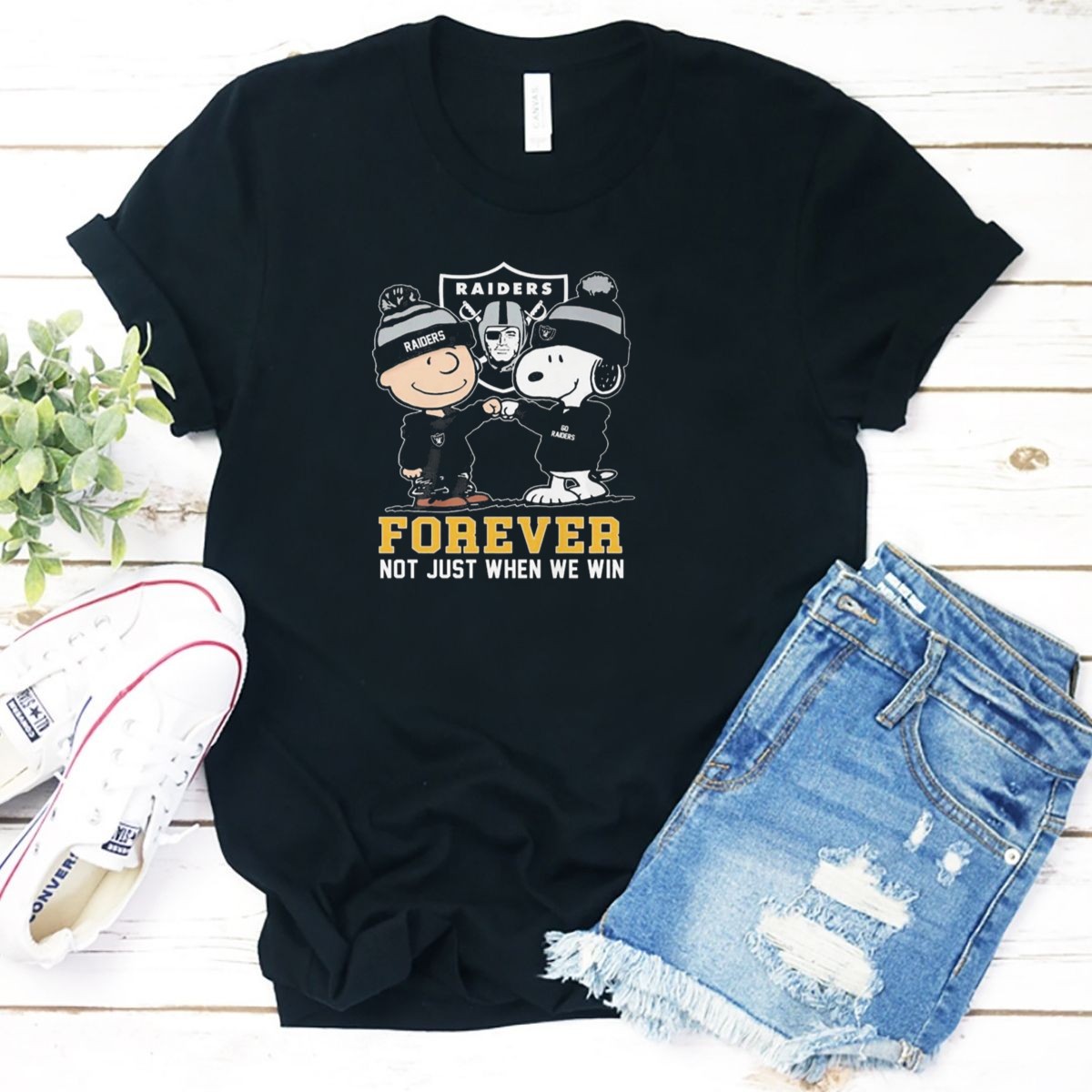 Show your unwavering support for the Las Vegas Raiders with our fan-made Snoopy Charlie Brown “Raiders Forever Not Just When We Win” T-shirt! This fun and playful design is perfect for true fans who celebrate their love for the team every day, whether you’re at a game, hanging out with friends, or just enjoying casual outings. Crafted for comfort and style, this classic fit T-shirt is a must-have for any Raiders enthusiast looking to showcase their team spirit all season long.