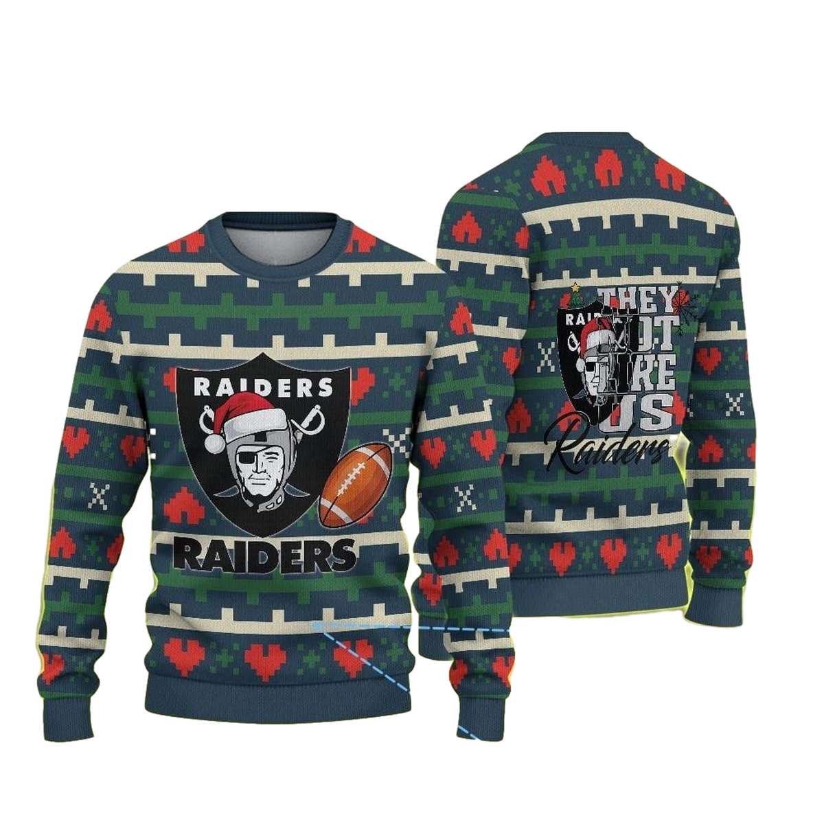 Get ready to turn heads this winter with our Las Vegas Raiders “They Don’t Like Us” Heart and Geometric Patterns Ugly Sweater! Perfect for die-hard fans and those who love to embrace the quirky side of holiday fashion, this sweater is your go-to for festive gatherings, cozy nights at home, or sporting events. Its bold design and relaxed fit make it a standout piece that showcases your team spirit while keeping you snug and stylish.