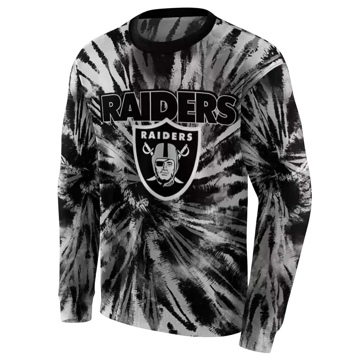 Unleash your bold side with the Las Vegas Raiders Tie Dye Pattern Black AOP Sweatshirt, designed for fans who want to showcase their team spirit in style. Perfect for casual outings, game days, or simply lounging at home, this sweatshirt combines a vibrant tie-dye design with the iconic Raiders logo, making it a unique addition to any streetwear collection.