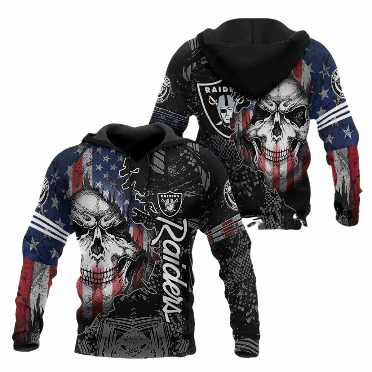 Introducing the Las Vegas Raiders US Flag Skull AOP Hoodie, a bold statement piece for passionate fans who love to showcase their team spirit in style. Perfect for game days, casual outings, or lounging at home, this hoodie combines a striking design with ultimate comfort, making it an essential addition to any Raiders supporter’s wardrobe.