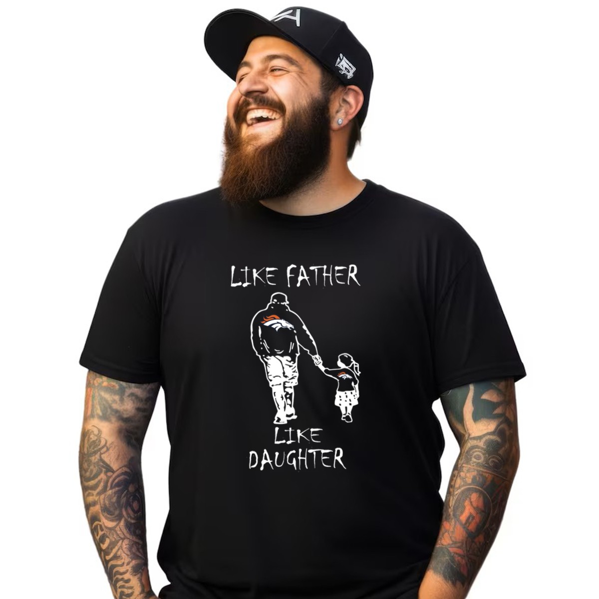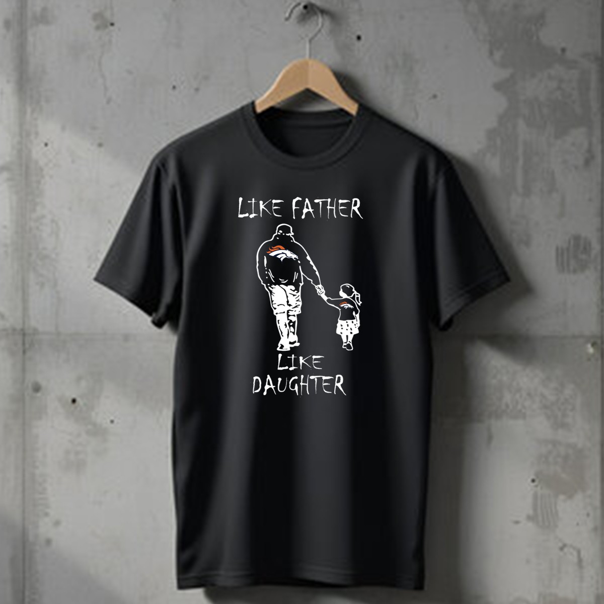 Show off your team spirit with the “Like Father Like Daughter” Denver Broncos Fan Duo T-Shirt! Perfect for proud parents and their little fans, this shirt is designed for casual wear, themed events, or simply cheering on the Broncos from home. With a fan-made design printed in the USA, it combines comfort with style, making it a unique addition to any family’s game day attire.