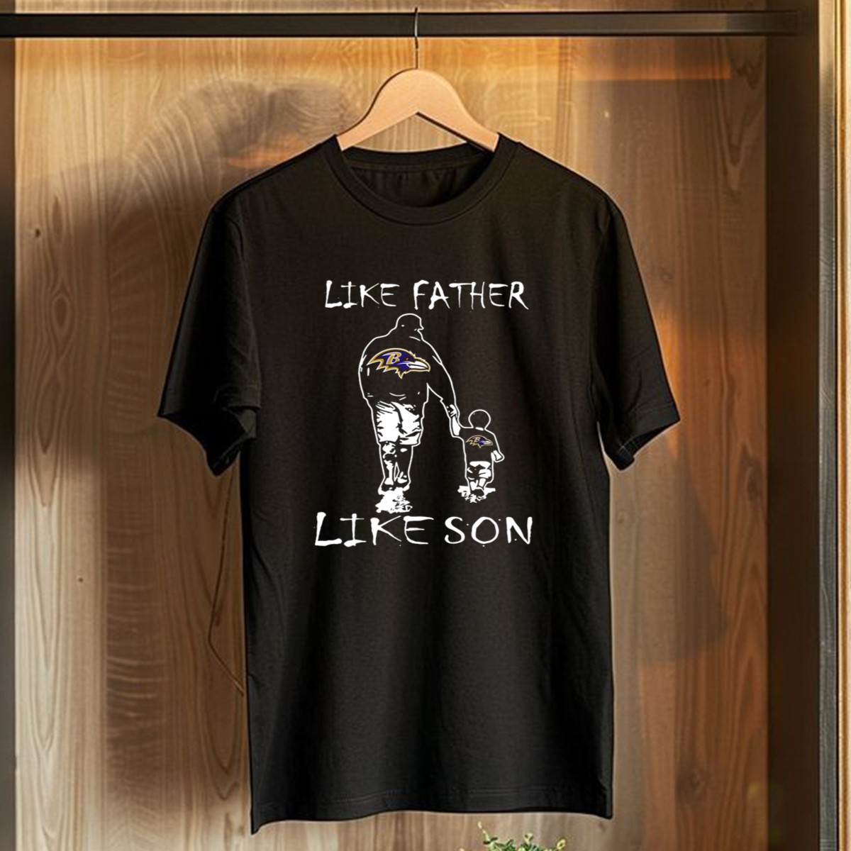 Show your family pride and love for the Baltimore Ravens with our “Like Father Like Son” fan-walk T-shirt. Perfect for fathers and sons who share a passion for their team, this shirt is ideal for casual outings, game days, or themed events. Made from high-quality materials and featuring a unique fan-made design printed right here in the USA, it’s a must-have for any devoted Ravens supporter.