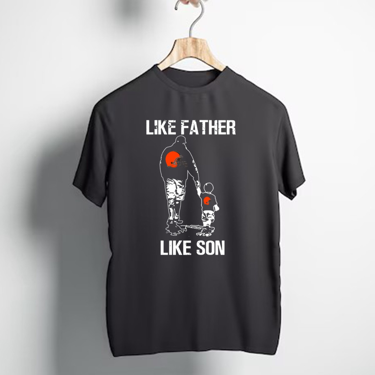 Celebrate the bond between fathers and sons with our “Like Father Like Son” Cleveland Browns T-Shirt. Perfect for die-hard fans of the Cleveland Browns, this shirt is designed for those who want to show off their team spirit in style. Ideal for casual outings, themed events, or daily wear, this fan-made design is printed in the USA, making it a unique addition to your game day attire.