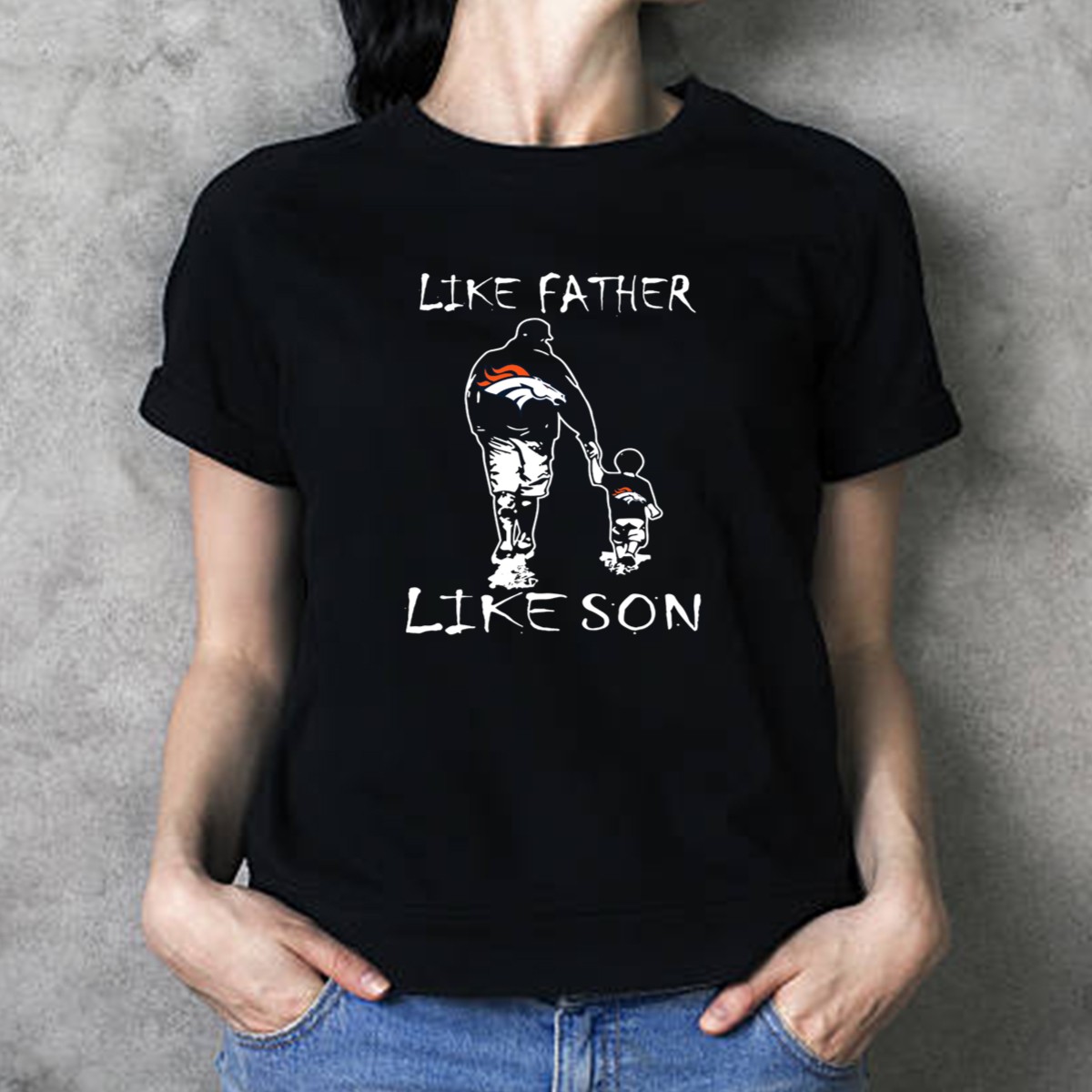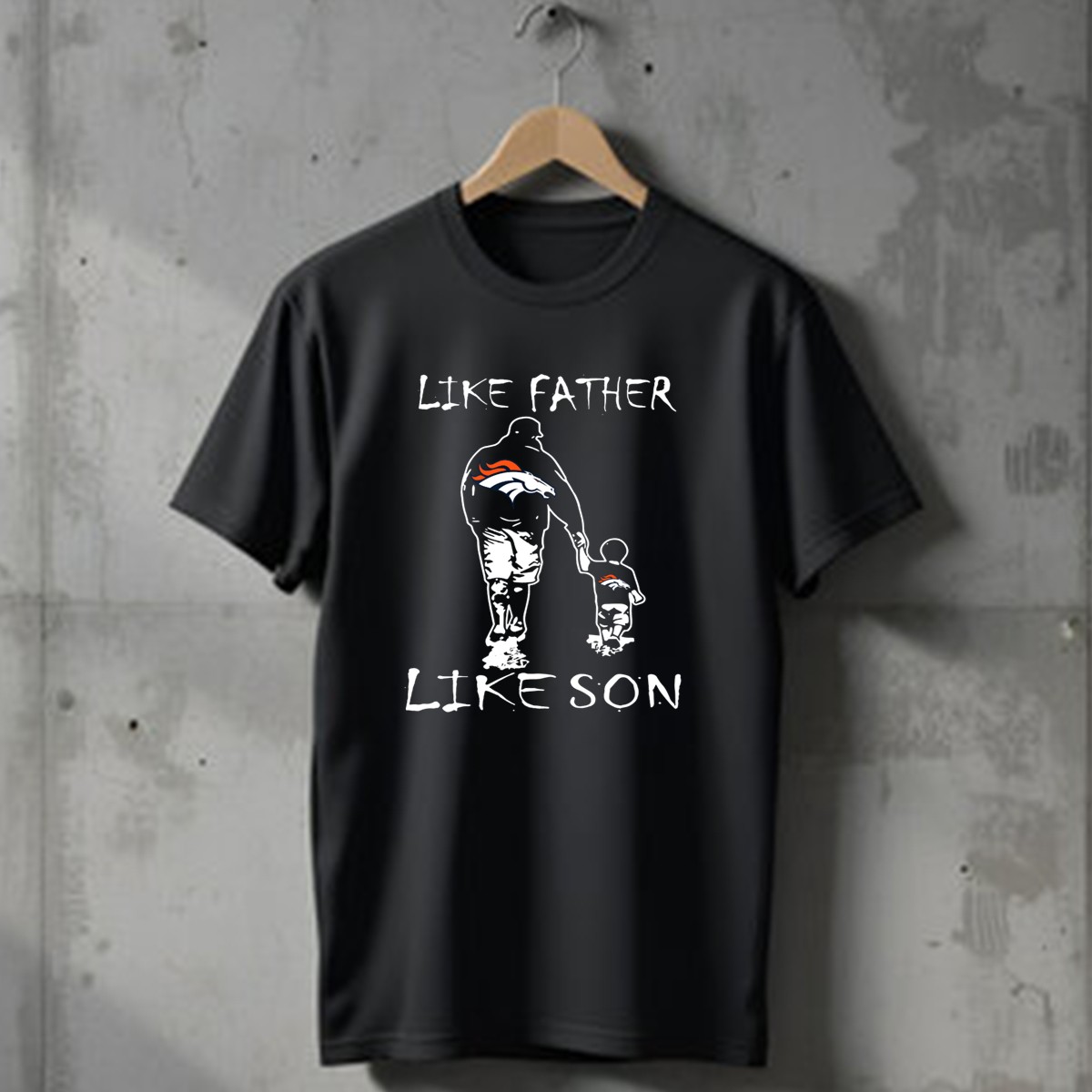 Show your unwavering support for the Denver Broncos with our “Like Father Like Son” iconic T-shirt, designed for the devoted fan and perfect for both fathers and sons. This fan-made design celebrates the bond between generations while showcasing your team spirit. Whether you’re at a game, a family gathering, or just enjoying a casual day out, this shirt is a great way to express your love for the Broncos in style.