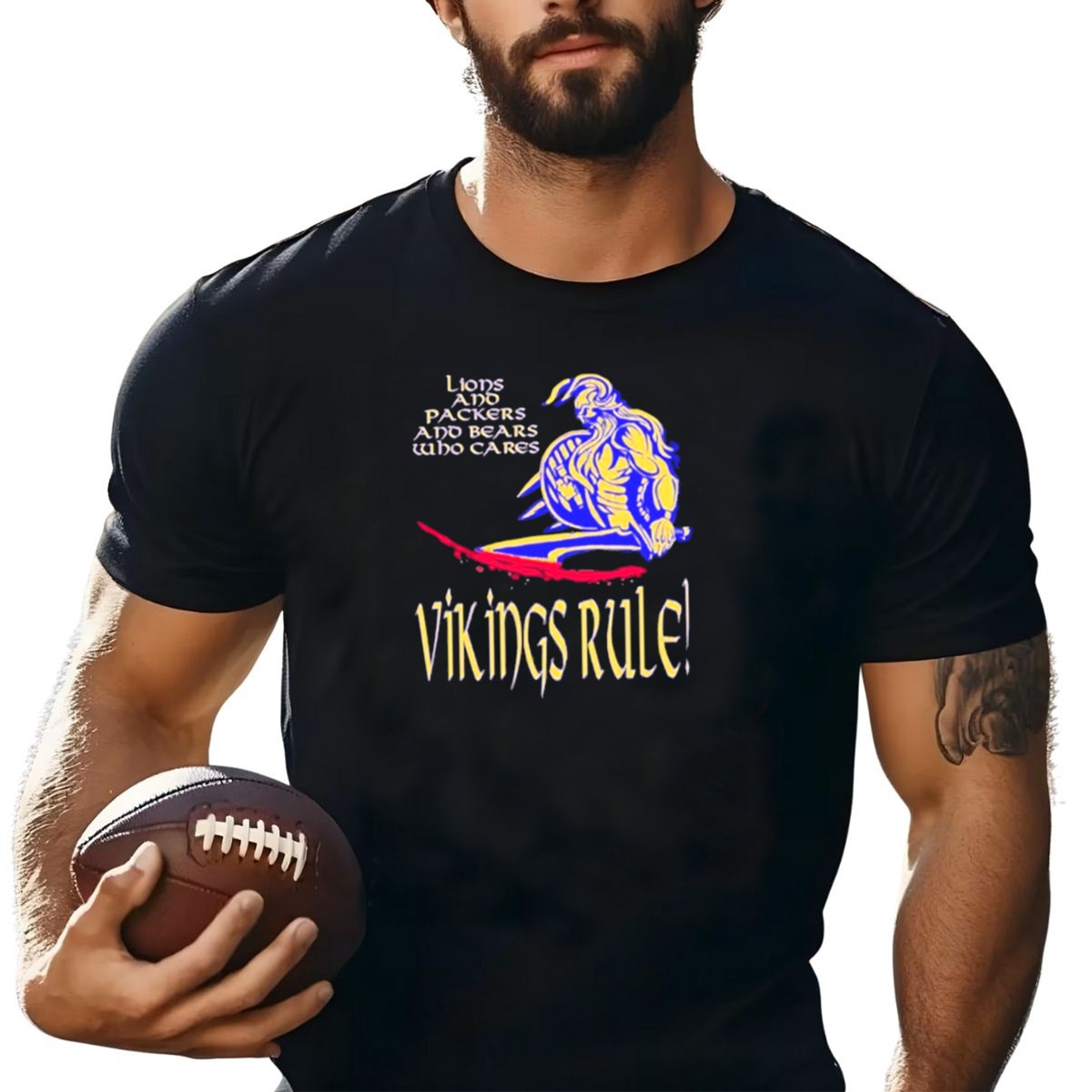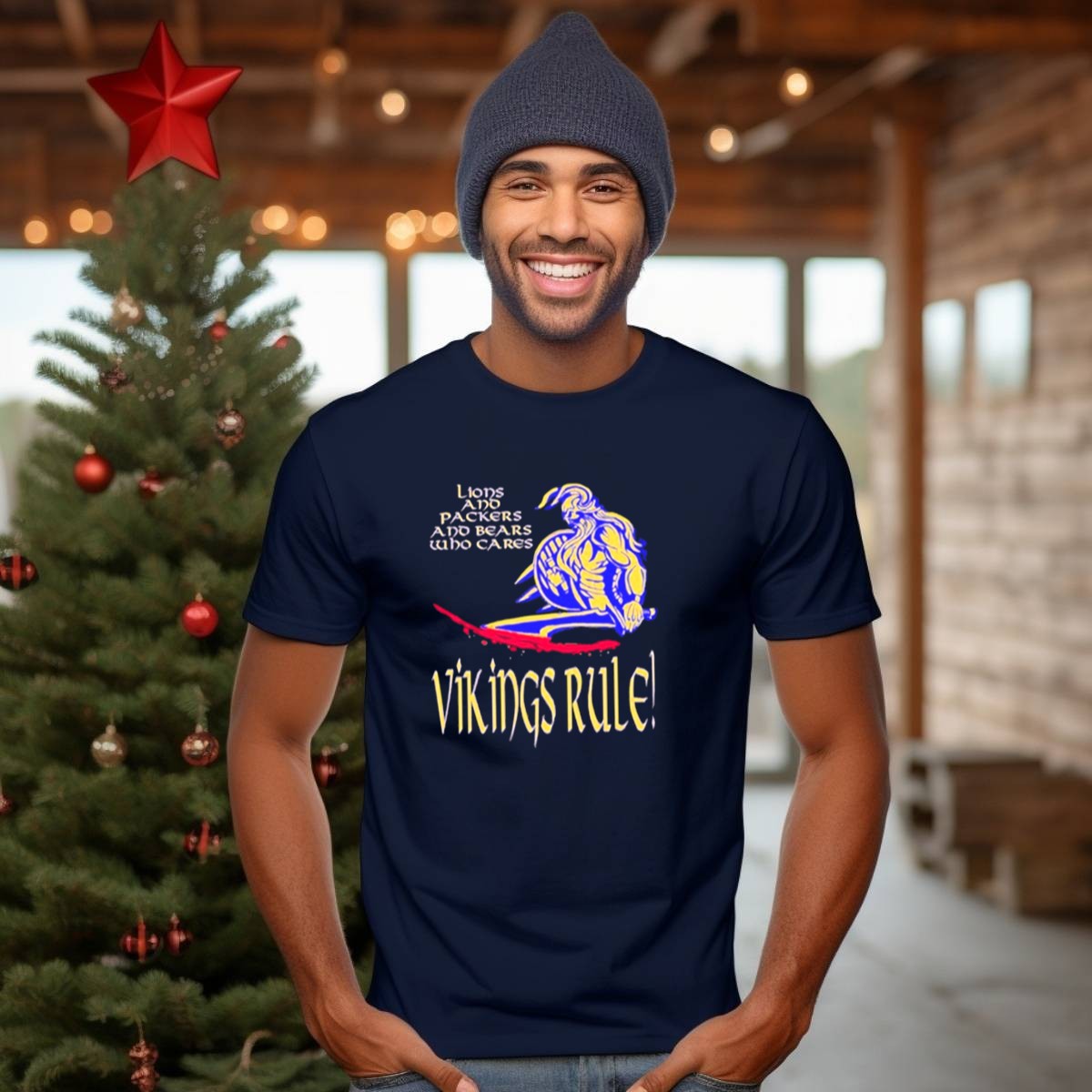 Show your unwavering support for the Vikings with our “Lions And Packers And Bears Who Cares Vikings Rule” T-shirt! Perfect for die-hard fans, this shirt is an ideal choice for casual outings, themed events, or daily wear. Made with a fan-made design printed right here in the USA, it celebrates your team spirit in style and comfort, making it a must-have for any true Vikings enthusiast.