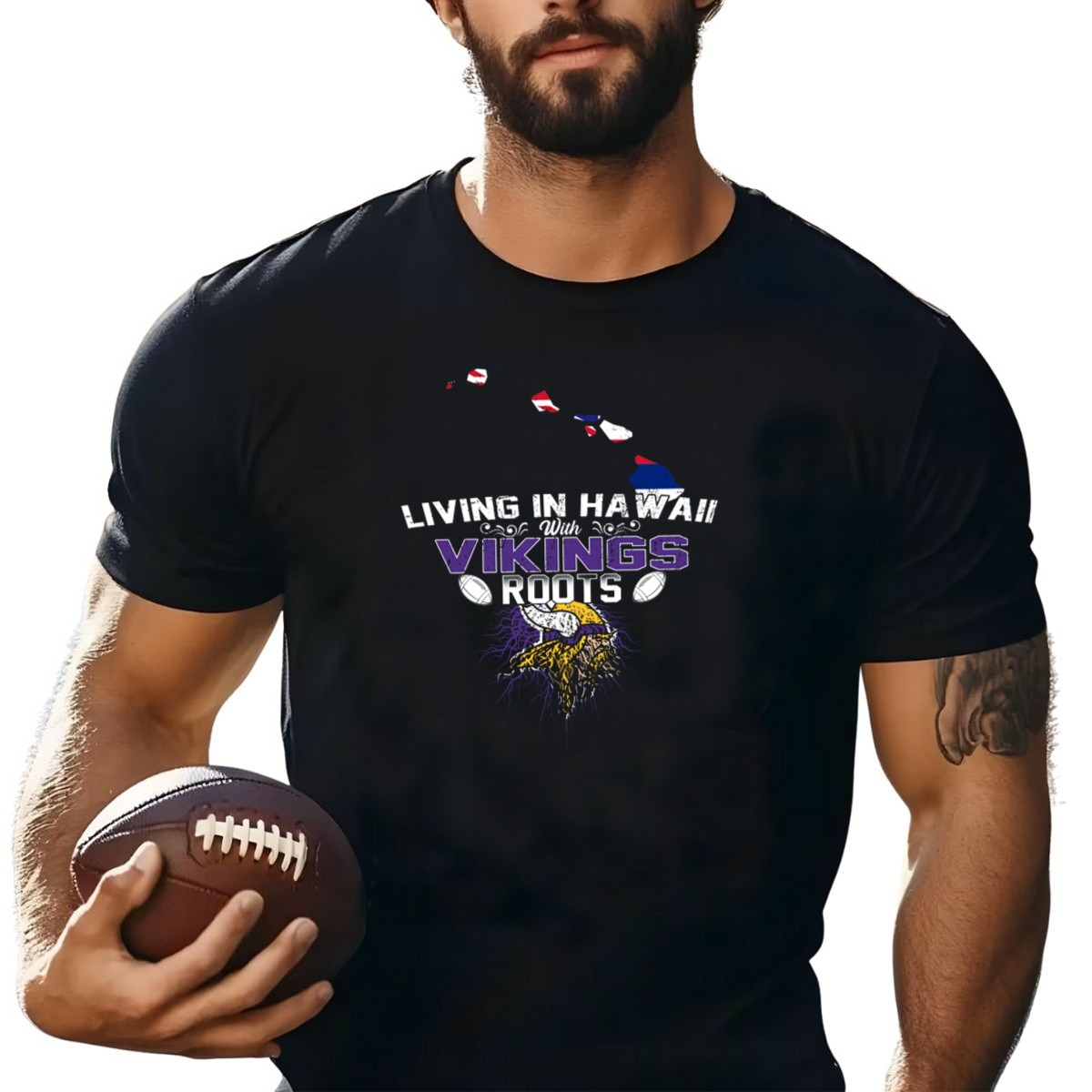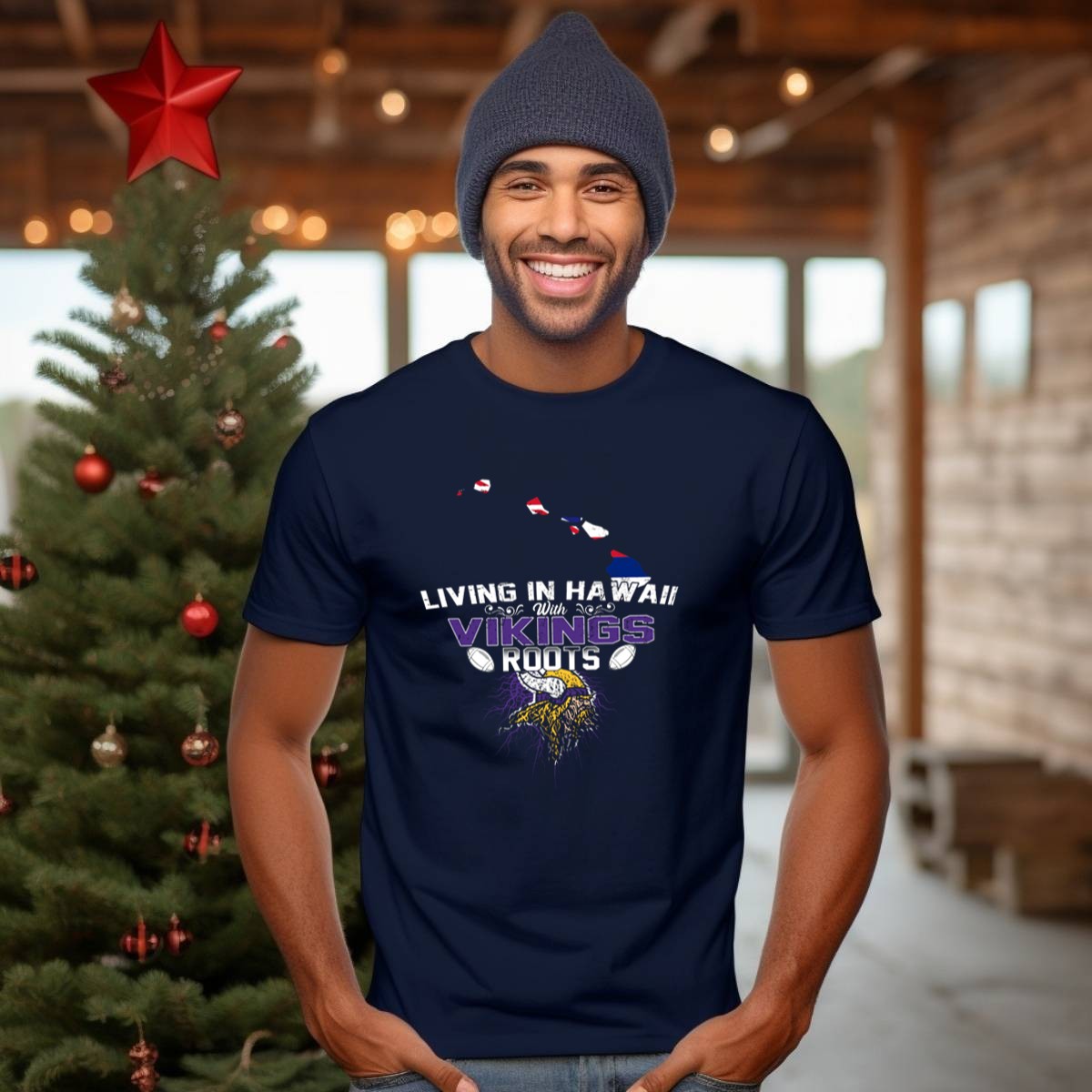 Embrace your unique heritage with our Living In Hawaii With Vikings Roots Football Helmet Map T-Shirt! This fan-made design celebrates the spirit of adventure and the love of football, making it perfect for anyone who identifies with both the beauty of Hawaii and the boldness of Viking roots. Ideal for casual outings, themed events, or just lounging around, this shirt represents a fusion of cultures and passions, bringing a touch of fun to your everyday wear.